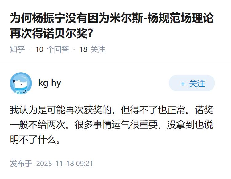 为何杨振宁没有因为米尔斯-杨规范场理论再次得诺贝尔奖?