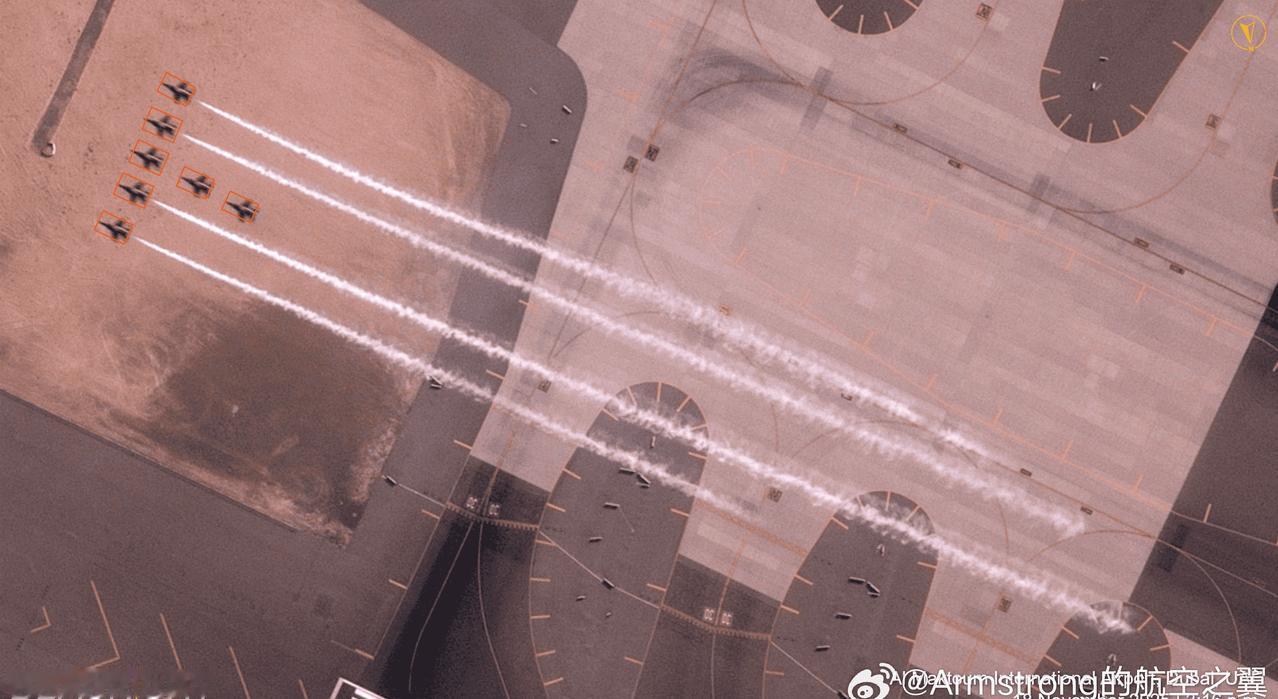 美国BlackSky公司的卫星拍到了迪拜航展上编队飞行的L-15。2025迪拜航展