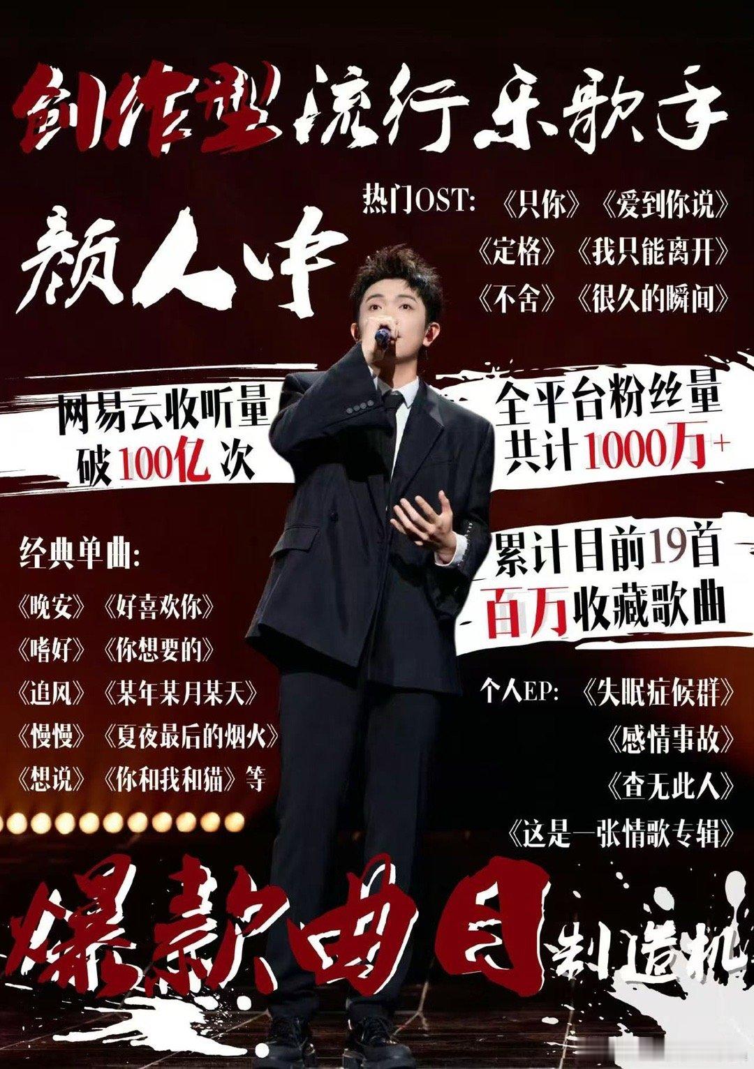 终于等到颜人中上音综!他自带混响的嗓音简直就是为舞台而生,演唱会现场的氛围好到让人不想散场。期待在节目里听到他更多的神仙现场!