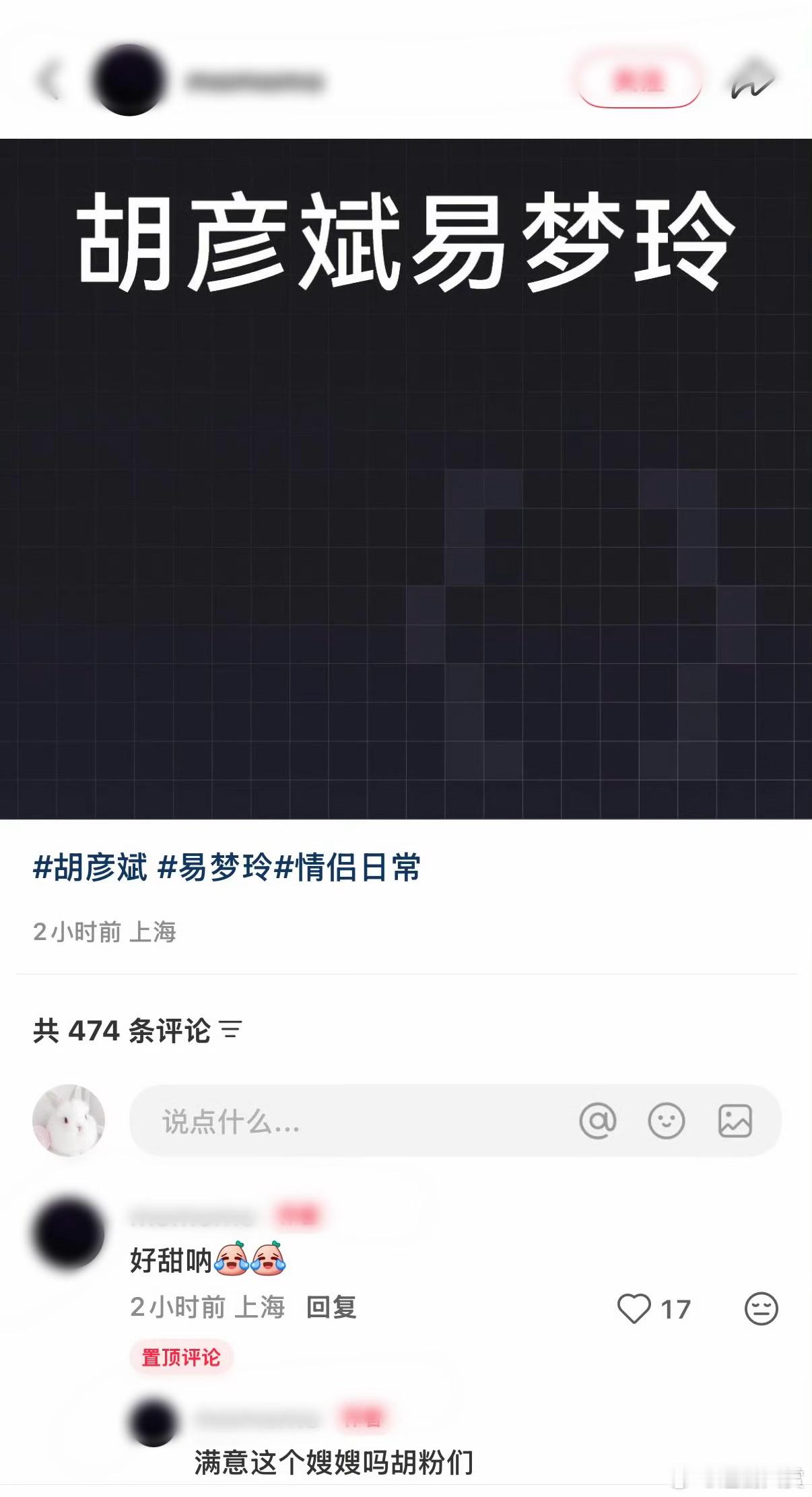 有网友曝胡彦斌易梦玲恋情,两人接吻视频传出。戴过同款手表,还一起去看了张一山话剧