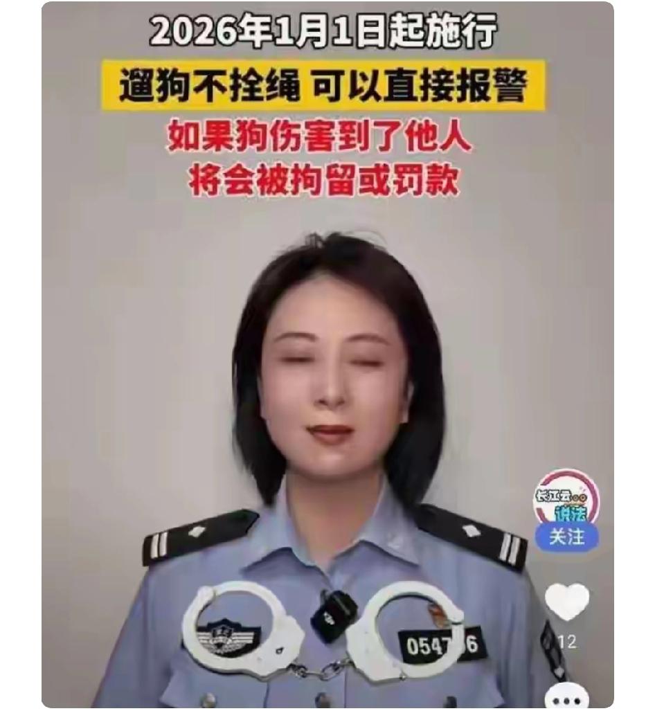 人大代表一席话问住养犬人:你的宠物狗,凭什么让他人付出代价? 从2026年1月1日起遛狗不拴绳将直接报警,狗伤人后主人可能面临拘留或罚款! 这次新规的重点不是“有没有牵着狗绳遛狗”,而是“有没有按规矩养狗”。 以后可不是“等闯祸了再追责”,而是“先把规矩做好,再说后果”。 因为行为可见,后果不可控,以后就不会再出现“明知道不让遛狗还让狗伤人”的事情了。 很多家长之所以不让孩子和狗接触,不是孩子怕狗,而是担心狗伤人后,家长不仅要承担医药费,还得承担精神损失费。 所以新规才会要求“遛狗不拴绳”的直接报警处理,而不是“狗伤人了再处理”。 新规出台的目的就是为了保护他人的安全,防止狗主不按规矩养犬造成他人的伤害。 社区在文明养犬工作中,要做到“四个到位”:犬只登记到位、巡查到位、宣传到位、督导到位。 文明养犬,不仅仅是为了自己好,更是为了对他人的负责。新规出台的时间是2026年1月1日,这就是底线和时间节点。 在这之前还有一个窗口期,希望大家能抓住这个窗口期,重视养犬规范,遵守文明养犬公约,与他人和谐相处,让社会更温暖! 对此,,您怎么看?!