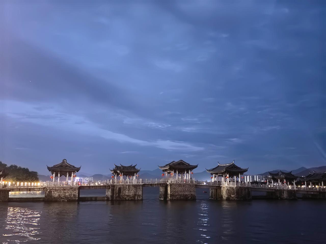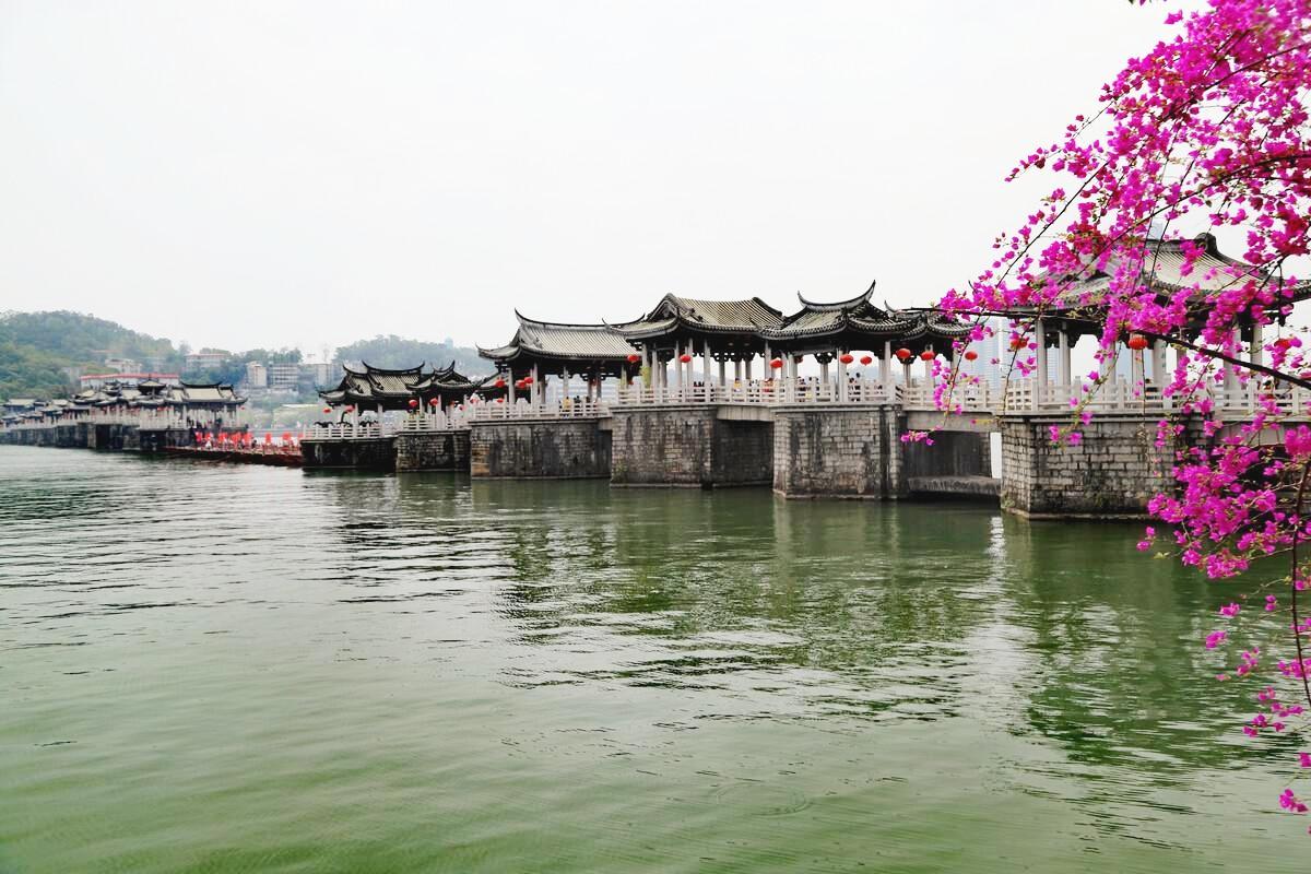 中国四大古桥~~广济桥,位于广东省潮州市古城东门外,横跨韩江。 广济桥,始建于南宋乾道七年(1171年),初为浮桥,由86只巨船连结而成,始名“康济桥”。淳熙元年(1174年)浮桥被洪水冲垮,此后历任太守相继增筑桥墩。明宣德十年(1435年),知府王源主持“叠石重修”,并更名为“广济桥”。正德八年(1513年),知府谭纶增一墩,减浮船六只,遂成“十八梭船二十四洲”的独特风格。1958年,政府拆除十八梭船,改建为三孔钢桁架及两处高桩承台式桥梁,2003年至2007年,广济桥按明代风格进行全面修复,恢复了启闭式浮桥及桥上亭台楼阁的历史风貌。 广济桥为浮梁结合结构,全长518米,由东西二段石梁桥和中间一段浮桥组合而成。东边梁桥长283.35米,有桥墩12个和桥台一座;西边梁桥长137.3米,有桥墩8个。中间浮桥长97.3米,由十八只木船连接而成。桥上共有桥亭30个,匾额43块,桥墩采用韩山的大青麻条石,以卯榫结构叠合,石梁每跨均架设4条巨型石梁,最大长约15米、重约50吨。 广济桥集梁桥、浮桥、拱桥于一体,是中国桥梁史上的孤例,曾被著名桥梁专家茅以升誉为世界上最早的启闭式桥梁。潮州民间还流传着“仙佛造桥”的传说,为广济桥增添了神秘色彩。此外,广济桥自古以来便是货物集散和转运的重要枢纽,桥上店铺林立,形成了“一里长桥一里市”的繁荣商业文化中国第四大古桥