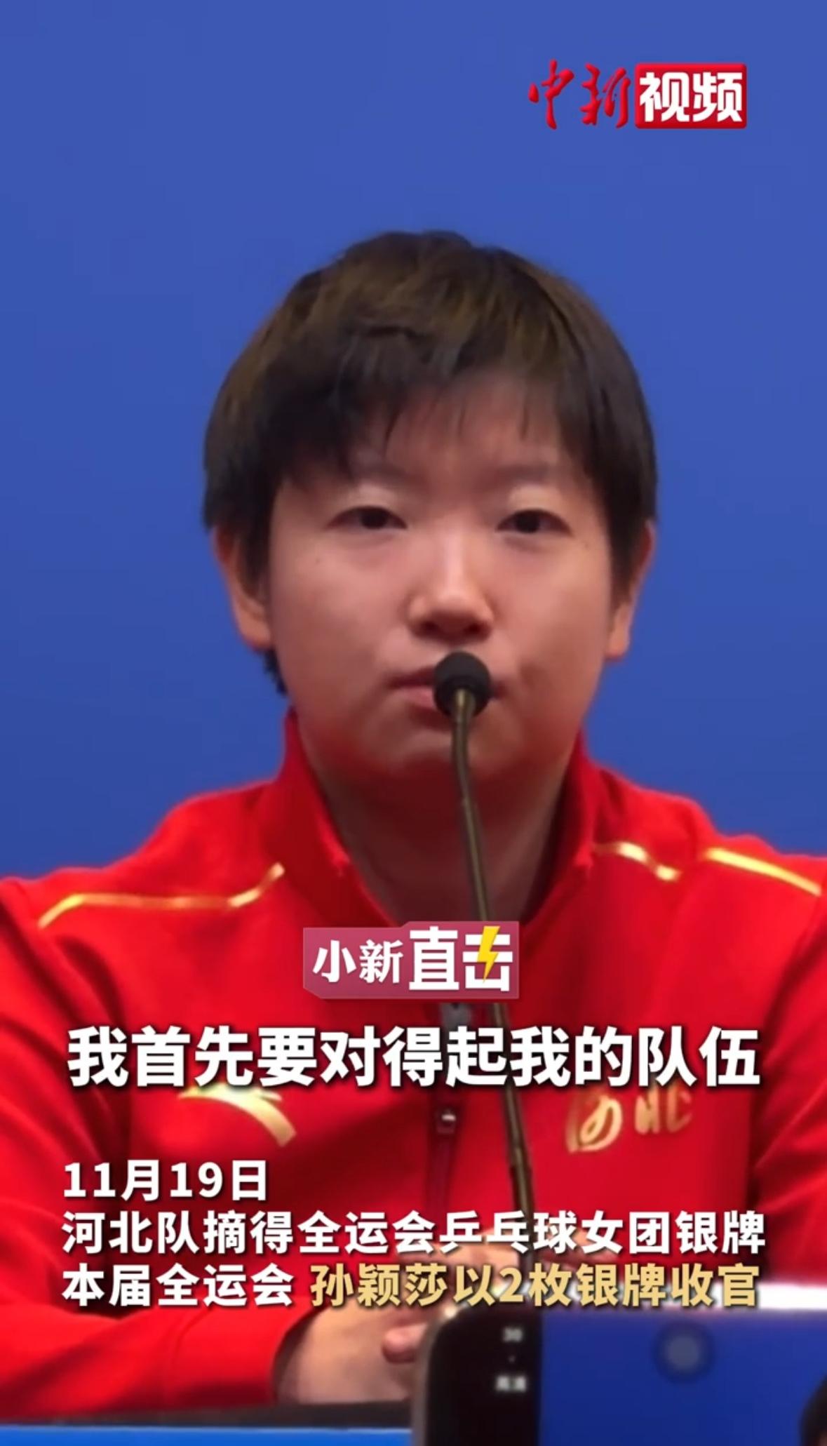 孙颖莎好样的,红着眼睛,真有担当,心有不甘但释怀和满意! 虽然两块银牌,特别满意自己,对得起队伍,全运会这就够了! 有输有赢很正常,球迷们也在成长,百分百的赢不太可能,这一路孙颖莎的努力大家也看到了,最重要的是莎莎的粉丝们也在成长,相互理解和尊重,奔赴美好的下一程比赛!