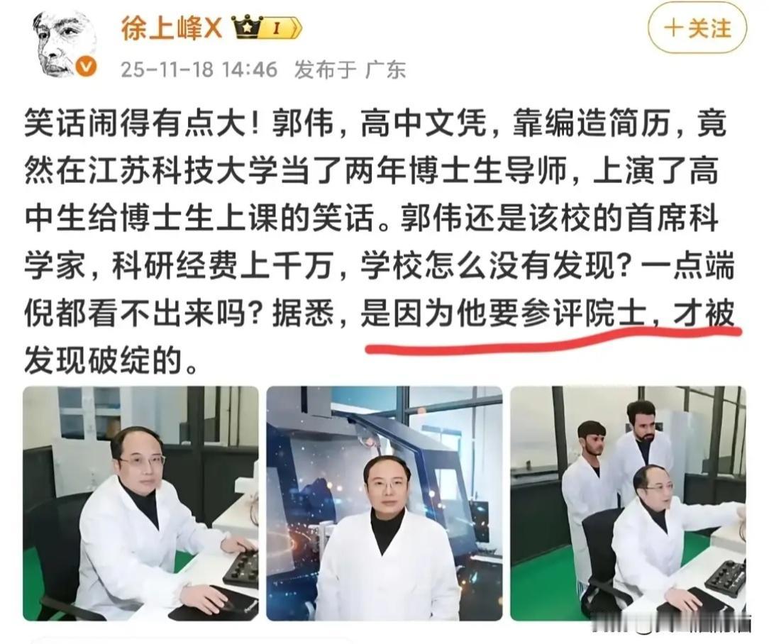 天大的笑话,一个只有高中学历的假博士成为“首席科学家”,带着一群真博士搞科研。骗子横行只是傻子太多,还是有人同流合污?如果他有真才实学,实属自学成才的典范。