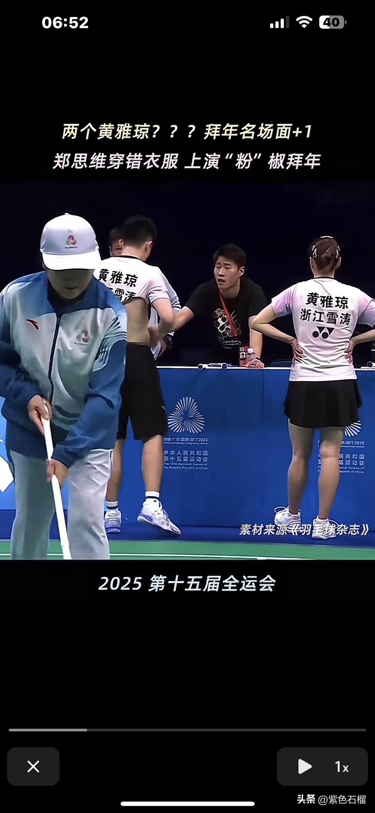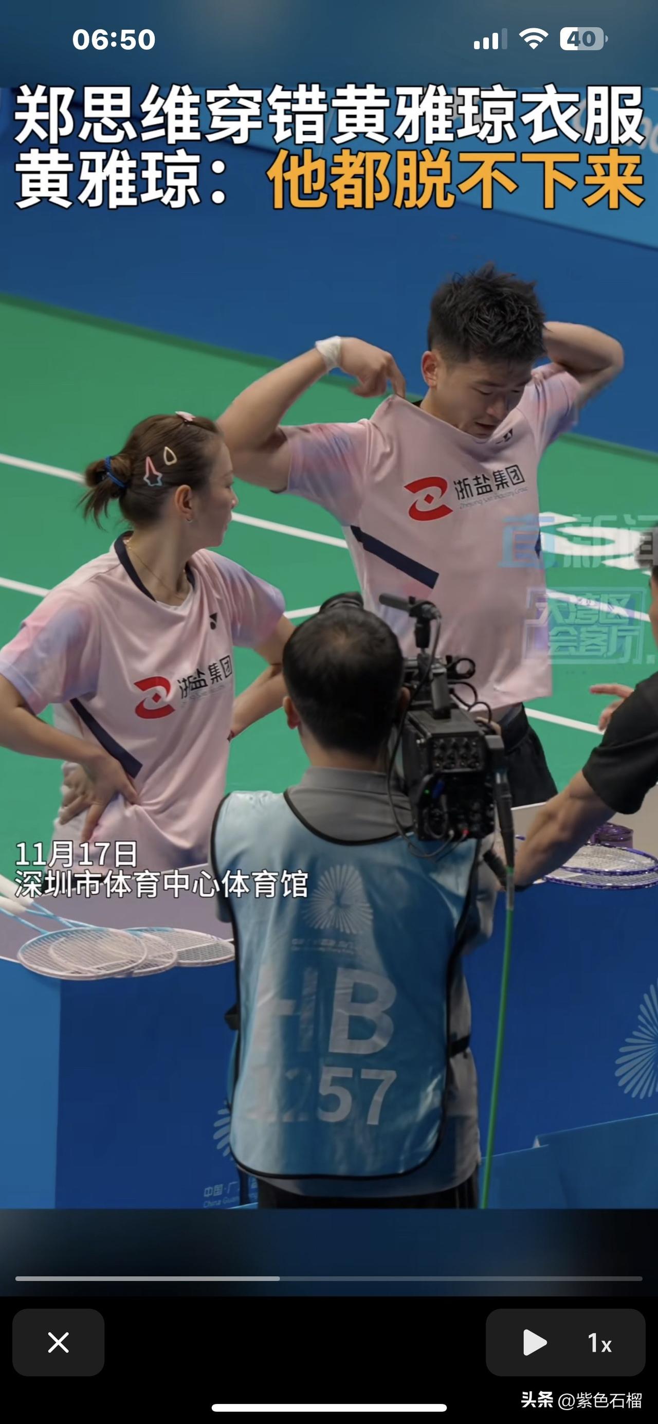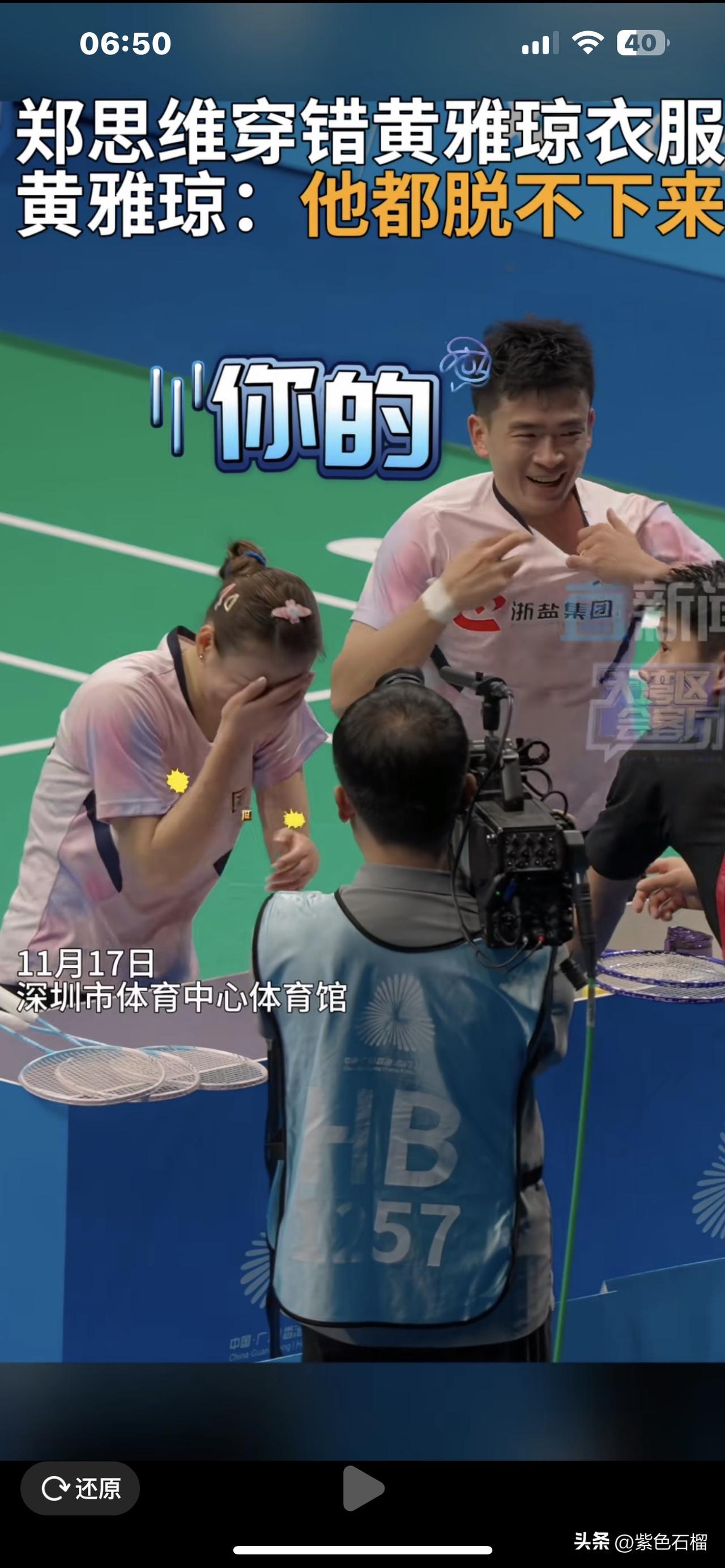 简直让人笑到喷饭。 全运会羽毛球比赛里,羽毛球混双运动员郑思维中途去换球衣,竟鬼使神差穿错了,把队友黄雅琼的衣服穿走了。刹那间,球场上出现了两个“黄雅琼”,宛如真假孙悟空一般。 更逗趣的是,等他发觉穿错衣服想脱下来时,却怎么都脱不掉。球衣主人黄雅琼见状,笑得几乎岔气,赶忙上前帮忙一起脱。 不得不说,这对混双组合实在太可爱啦! (图片来源网络)