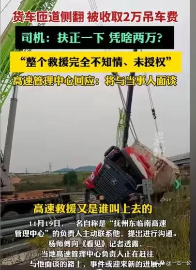 江西抚州,男子开着货车在高速路上,突然刹车失灵,他大惊失色,为了自保,他赶紧选择侧翻,为此他受了伤,被送进了医院,可当他从医院出来,却意外得知,他的车被救援了,吊车费要2万元,救援费还另外算,男子不同意,他说这不合法,不合规,不合理,这件事他从头到尾都不知情。 杨先生躺在医院的病床上,心里十分着急,出了这样的事,他很担心自己的货车,还有车上的那一批货,那是一批龙眼,如果不及时把货处理,他的损失可大了。 发生这样的事,杨先生虽然还没有从那惊心动魄的危险时刻中走出来,他已经担心自己的生计问题了,好在他只是受了轻微伤,很快就可以出院。 说起这场事故,他真的是太幸运了。 他是一名货车司机,常年奔波在外,为了一家老小,他拼了命地跑车。 当时,他在高速路上开车,每小时达到51公里,车速还是很快的。 他也没办法,选择送货这条路,他就得守时,按照送货的时间,要准时把货送到货主那里。 可当时他看见自己的车和前车得距离比较近时,他发现自己的车刹车失灵了。 就在那一刻,他非常慌张,一时不知道如何是好,眼看自己的车与前车距离越来越近了,如果不解决刹车这个问题,他的这条命可能就搭在这条高速路上了。 就在这千钧一发的时刻,他赶紧将车开往应急车道,然后选择了侧翻。 在当时的情况下,如果杨先生要保护自己,保住自己的生命,他唯有这条路可以走。 好在杨先生在侧翻的过程中,只是受了轻微伤,当时他也很快被送往医院了。 他在医院里,却时时刻刻担心着自己的货车和车上的那一批货。 等医生帮他处理了一下伤口,他就迫不及待地想来处理自己的事情了。 他本来想着,到了货车跟前,再叫救援,先把车扶正,如果车能够开,他就赶紧去送货。 结果他来到自己的货车侧翻的地方,却发现,他的货车不见了,他很快明白,自己的车应该是被拖下高速路了。 他赶紧去找自己的车,很快在高速路口,他看到自己的车了。 他兴奋地跑向自己的车跟前,却没想到一张天价账单等着他。 管理车辆的人告诉他,这辆车是有两台吊车扶正的,吊车费要2万元,除此之外,拖车的其他救援费,还要另外算。 当时的杨先生,听到这个账单金额,整个人就愣住在那里,他感到这费用实在是太高了。 两台吊车仅仅只是把他的货车扶正而已,就要2万元,这不合理。 更何况拖车等费用都还没有算,他更加不知道这笔费用到底是多少,拖车费有可能比吊车费还要贵,毕竟拖车比扶正车辆,更要费成本。 如果他要支付这么大的一笔钱,他真的感到压力非常大。 还有一个让他想不明白的地方,那就是他的车被扶正,被拖车,这件事他从头到尾都不知情。 当时他人在医院,不知道是谁联系了救援的车,也不知道是谁同意了救援车辆的费用,然后就将他的车扶正,将他的车拖到高速路口。 既然这一切他都不知情,那救援公司的行为,就让他感到很不可思议了。 他始终觉得这一笔费用不合理,不合法,不合规。 为何这么说呢? 从是否合规的这个角度来看,如果救援公司是有规定的,那么在拖车之前,就应该将相关的收费规定,先告诉杨先生,在杨先生同意的情况下,再进行救援。 否则,在杨先生不知情的情况下,无缘无故对杨先生的车进行了救援,然后又收取这么高的费用,这确实是不太合规。 从是否合理的这个角度来看,杨先生之所以觉得这件事情不合理,是因为他从头到尾都不知道这件事情,作为当事人,他有知情权。 如果救援公司没有将收费标准告诉他,杨先生是可以拒绝交费的,他并没有要求救援公司去救援他的车,两者之间就没有关系,杨先生没有要付钱的道理。 从是否合法的这个角度来看,救援公司对车辆进行救援,杨先生要支付一定的费用,那么这就是消费行为,杨先生有知情权。 《消费者权益保护法》第8条规定:消费者享有知悉其购买、使用的商品或者接受的服务的真实情况的权利。 但是杨先生从头到尾都不知情,所以他的知情权被侵犯了。 发生这样的事,救援公司应当和杨先生协商,杨先生可以只支付合理的价钱。 那么你对杨先生的这件事有何看法呢?