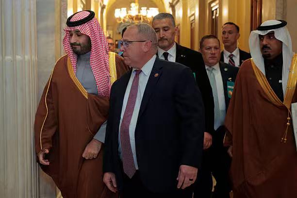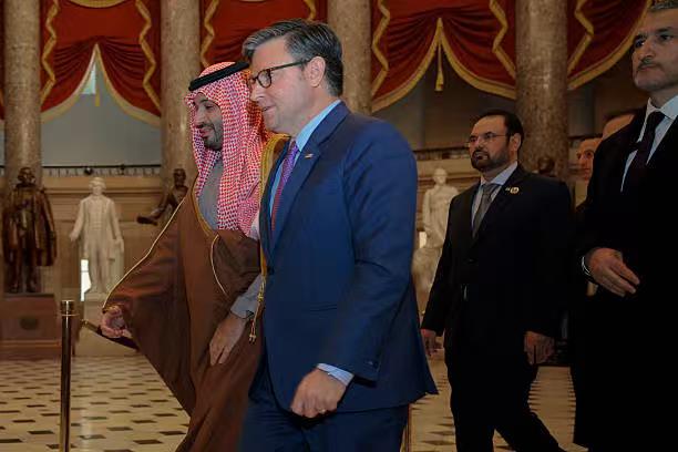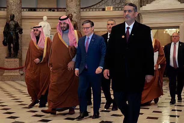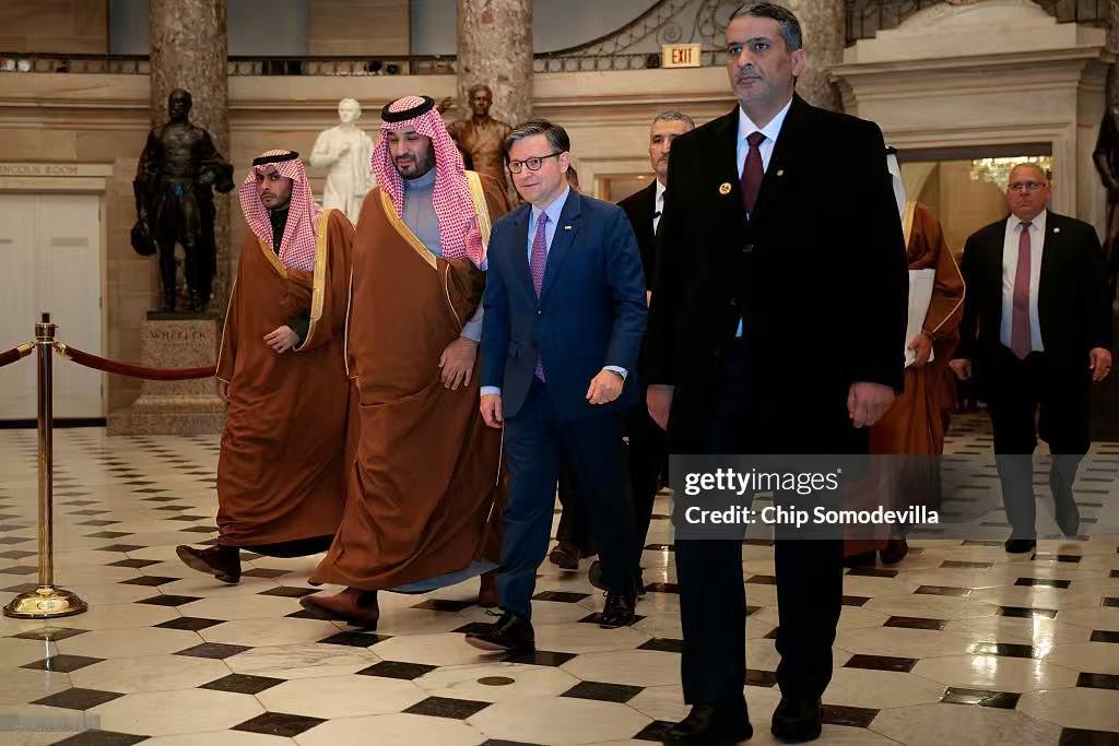 华盛顿,11月19日 沙特王储穆罕默德·本·萨勒曼周三在美国国会大厦会见了国会议员,这是此次访问华盛顿的第二天,此次访问旨在宣传比以往更紧密的经济和安全联系。众议院议长迈克·约翰逊与沙特代表团举行了双边及扩大会议。