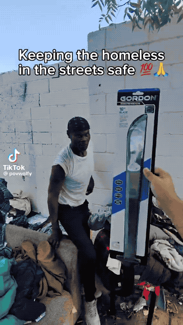 美国太抽象了:为了保证无家可归者安全,每人都发一把大砍刀!近日美国一位网友进行了