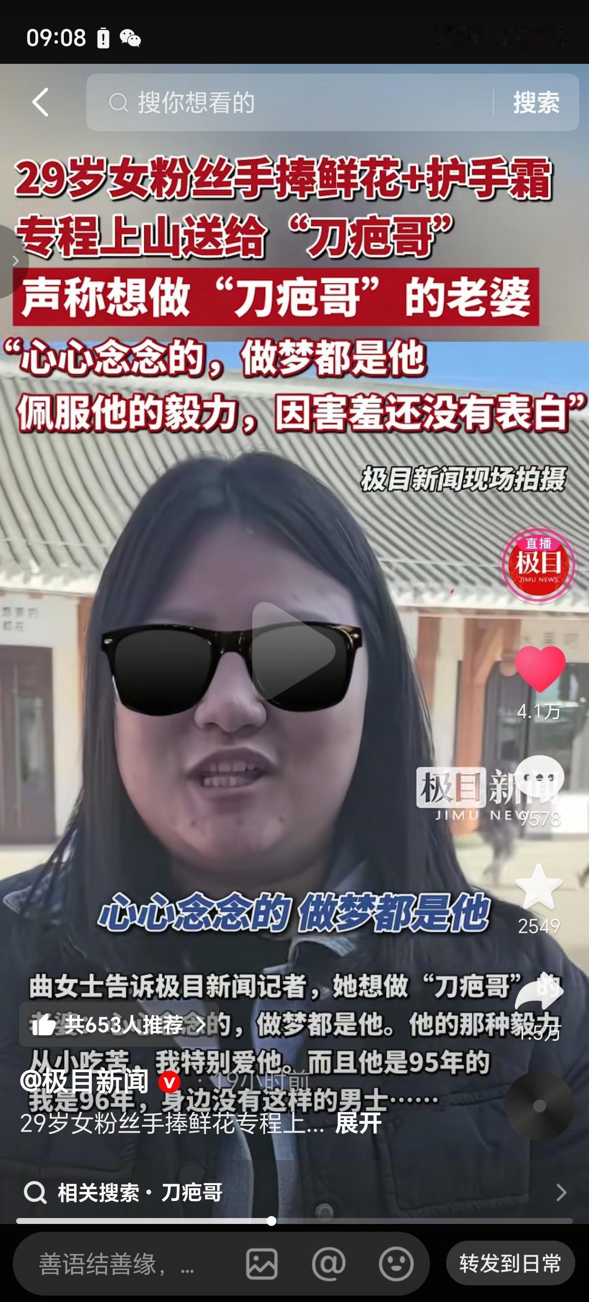 刀疤哥做梦都没想到,参加个荒野求生火了不说,还包分配老婆。这个微胖的女孩子有眼光啊,正是刀疤哥喜欢的类型吧? 我都被一个女孩子得情话感染了,主要是被酸到了,女孩子天天念着刀疤哥,做梦都是刀疤哥,特别想坐刀疤嫂,把刀疤哥都说害羞了,估计以前没有被女孩子这么表白过。 不得不说,表白都这么大胆的,被这波狗粮撑到了,有点腻~