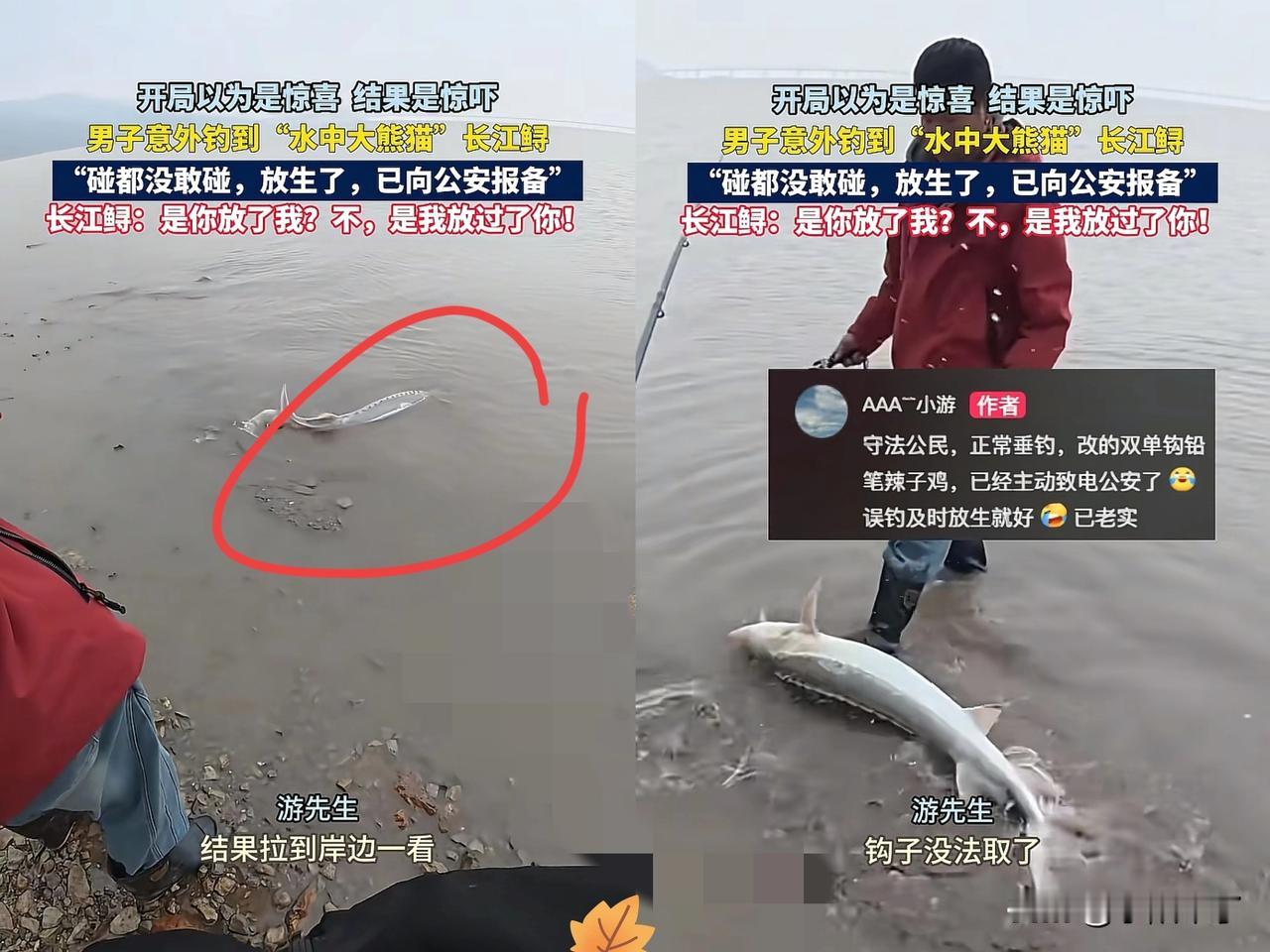 江西一小伙钓了一条大鱼,好不容易拉上岸,却吓得鱼竿都扔了!原来这白身墨脊、尖嘴带须的家伙,不就是钓友圈闻风丧胆的“牢底坐穿鱼”中华鲟吗? 没等慌神多久,小伙立马清醒:摘钩、抱鱼、狂奔放生,全程拍视频留证,转头就连打3通公安电话“自首”,那求生欲隔着屏幕都要溢出来了! 直到民警笑着说“误钓及时放就没事,是守法好公民”,他才敢松口气! 别笑他太怂,这才是最聪明的选择!中华鲟可是活了1.5亿年的“水中活化石”,国家一级保护动物,伤它一根鳞都可能面临五年起步的刑期! 现在野外保护动物越来越多,不是运气差,而是生态在变好,但这好运的前提,是我们守住“不伤害”的底线! 保护动物从不是空话,而是每个普通人的“自保指南”:你对自然手下留情,法律就对你网开一面!