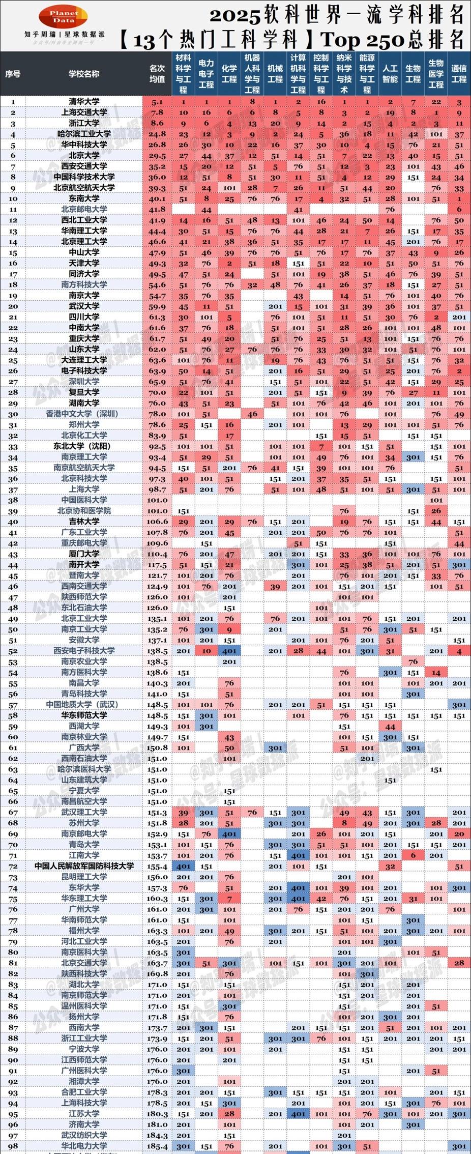 2025软科热门工科排名:成电前5、西电前10! 2025软科世界热门工科Top100排名:成电前5、西电前10!按照5个热门新工科排名,成电、西电闯入前十;按13个主流热门工科排名,哈工大、华科前五,北航东南前十,北邮211第一!谁是最大赢家? 大学排名 高考志愿避坑指南 高考分数线 理工科院校 软科 软科排名 软科世界一流学科排名 电子科技大学 西安电子科技大学
