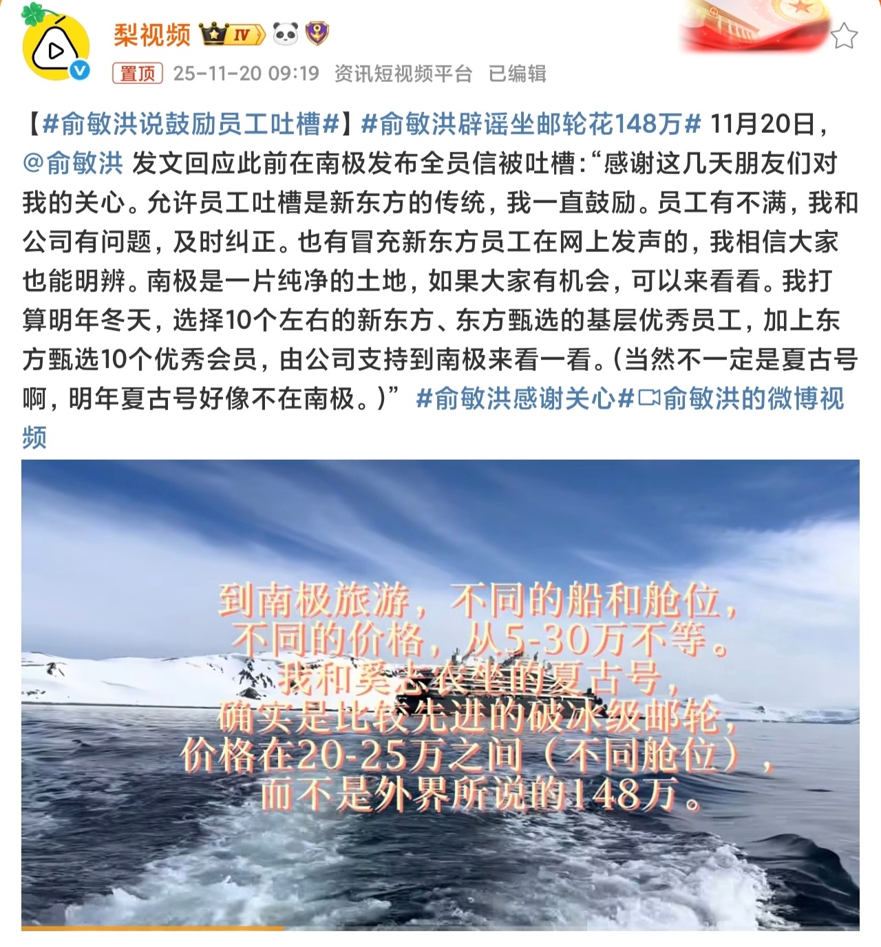 这个回应应该是比较令人满意的,接下来就是员工争名额了,一个员工去一趟南极至少20万吧,10个人也就是200万