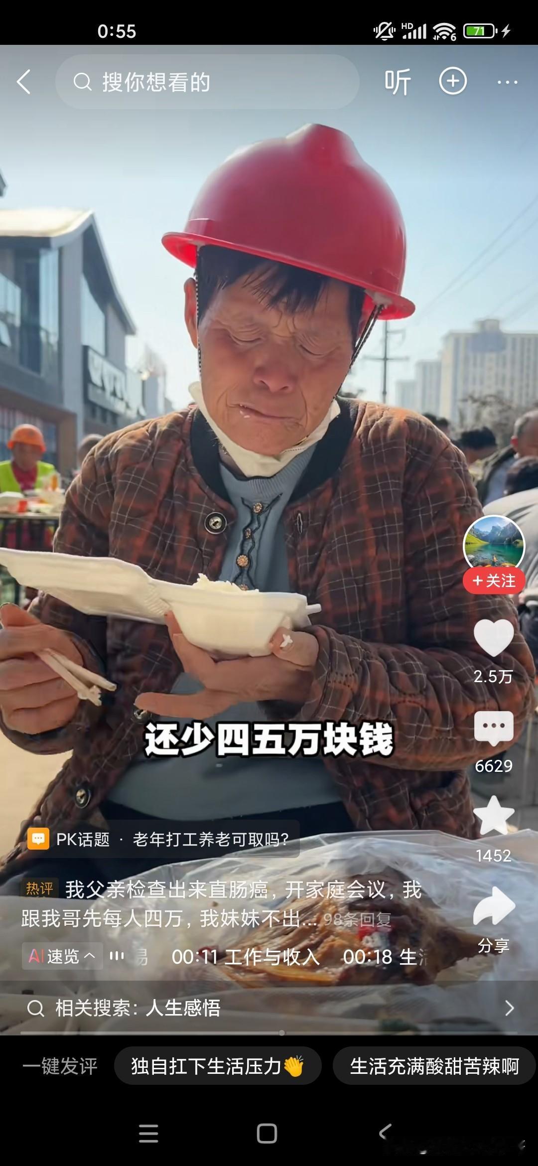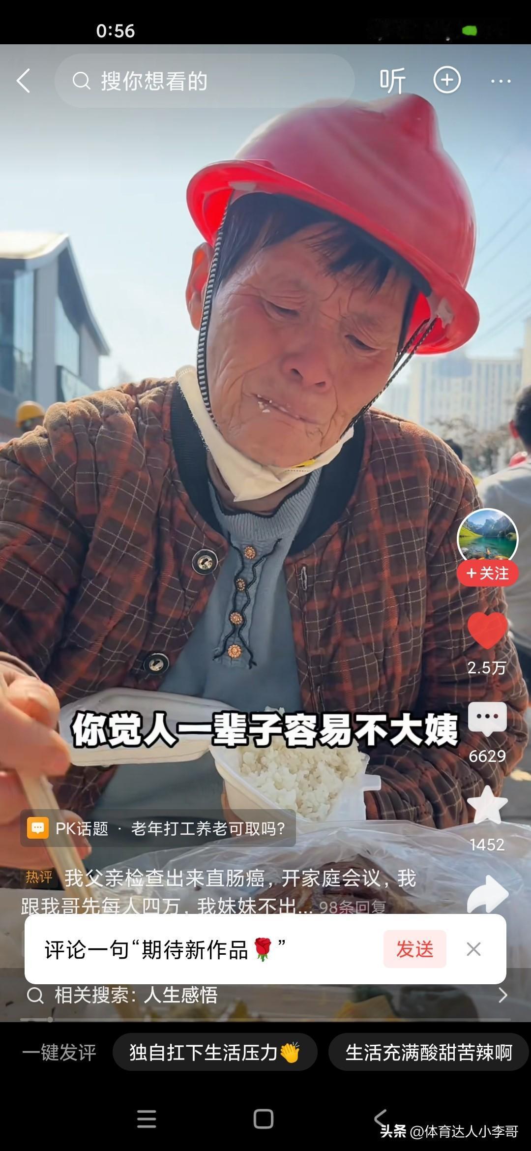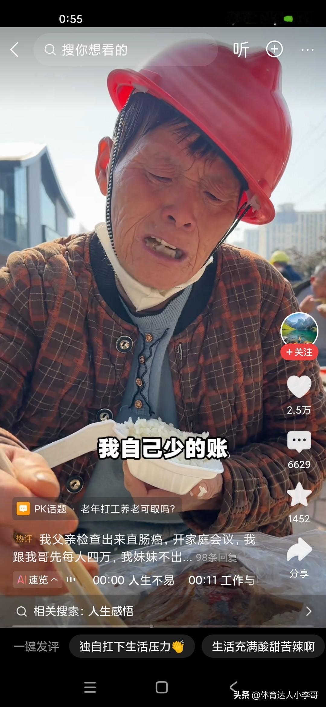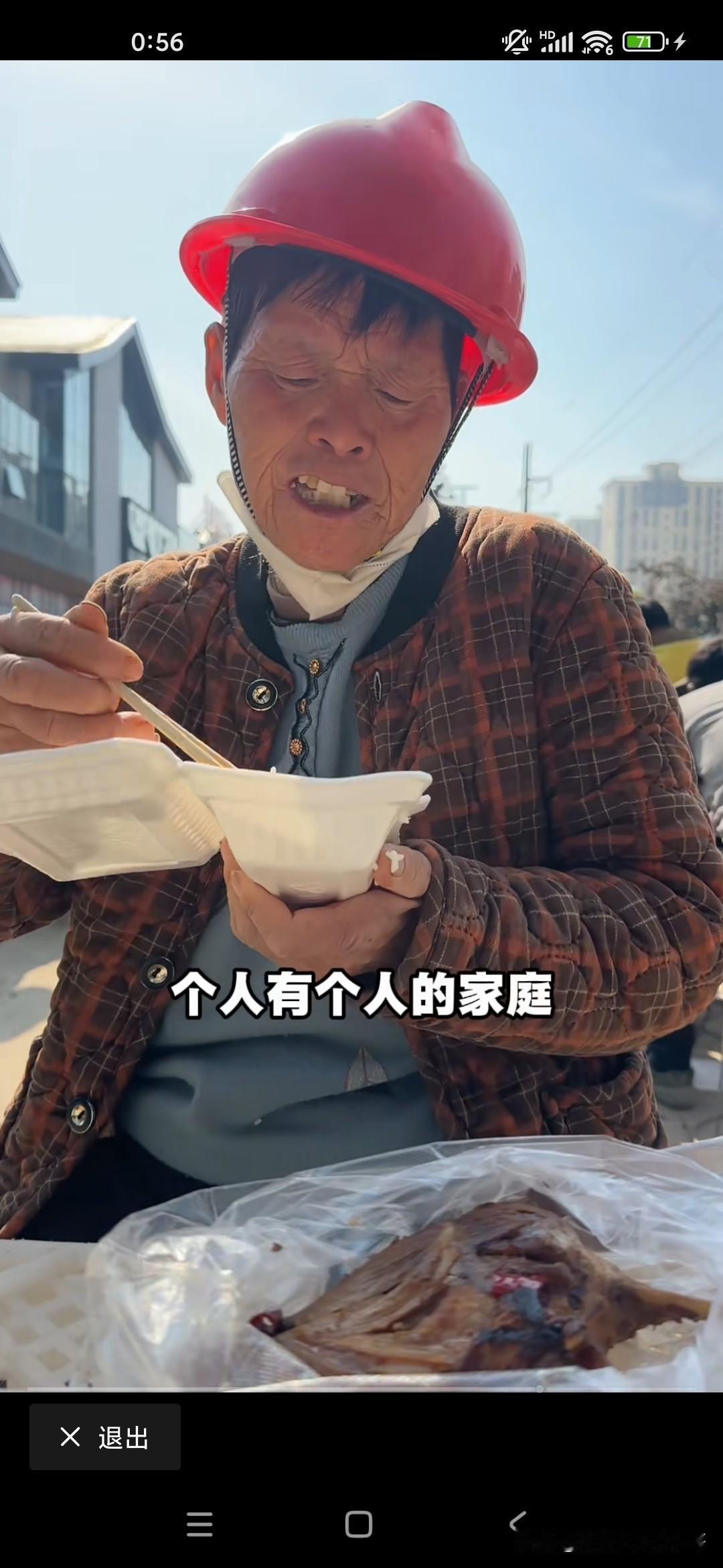昨天一位记者采访一位打扫卫生的阿姨,这位阿姨已经65岁了,跟我爸妈一样的年纪,仍然在外面打零工,现在的天已经低于10度了,天气非常冷,她自己在外面点的外卖,但是当记者问大姨你没有什么老伴吗?她说老伴已经因病去世了,当时为了给老伴看病,摊了一屁股债,现在已经还了2万了,还有四五万的外债,自己能干一点是一点吧,趁着自己身子骨还行,当时这个记者就问她没有子女吗?她说有5个子女,但是个人有个人的家庭,个人有个人的负担,她不想给自己的儿女添麻烦,当时这个记者眼眶都红了,如果是儿女稍微孝顺一点,帮她母亲稍微分担一点,65岁的母亲也不至于再出来干活呀!有的时候真的是你没有办法理解他们的儿女是怎么想的,我们就抨击他们儿女太不孝顺了,这么冷的天,让65岁的老人出来打工,你们忍心吗?你们有出息吗?你们还是人吗?