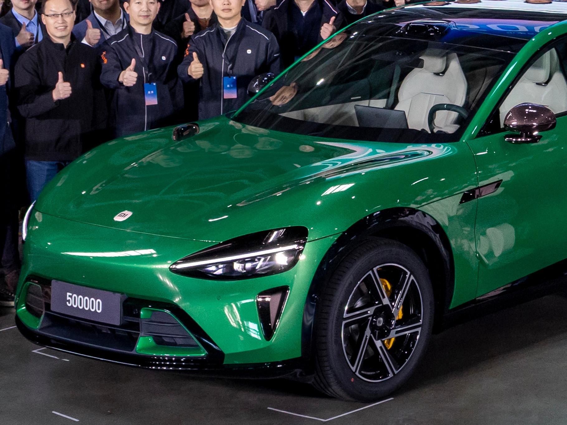 小米汽车,第50万辆车,正式下产线!小米汽车,一己之力,创造了汽车史上多个奇迹!人群中央,雷总精神饱满,期待下一个佳绩!人群背后,整齐洁净的产线,可以看到依然有多辆车在生产中!不知道这辆极具纪念意义的绿色小米YU7,会交付给哪个幸运儿呢