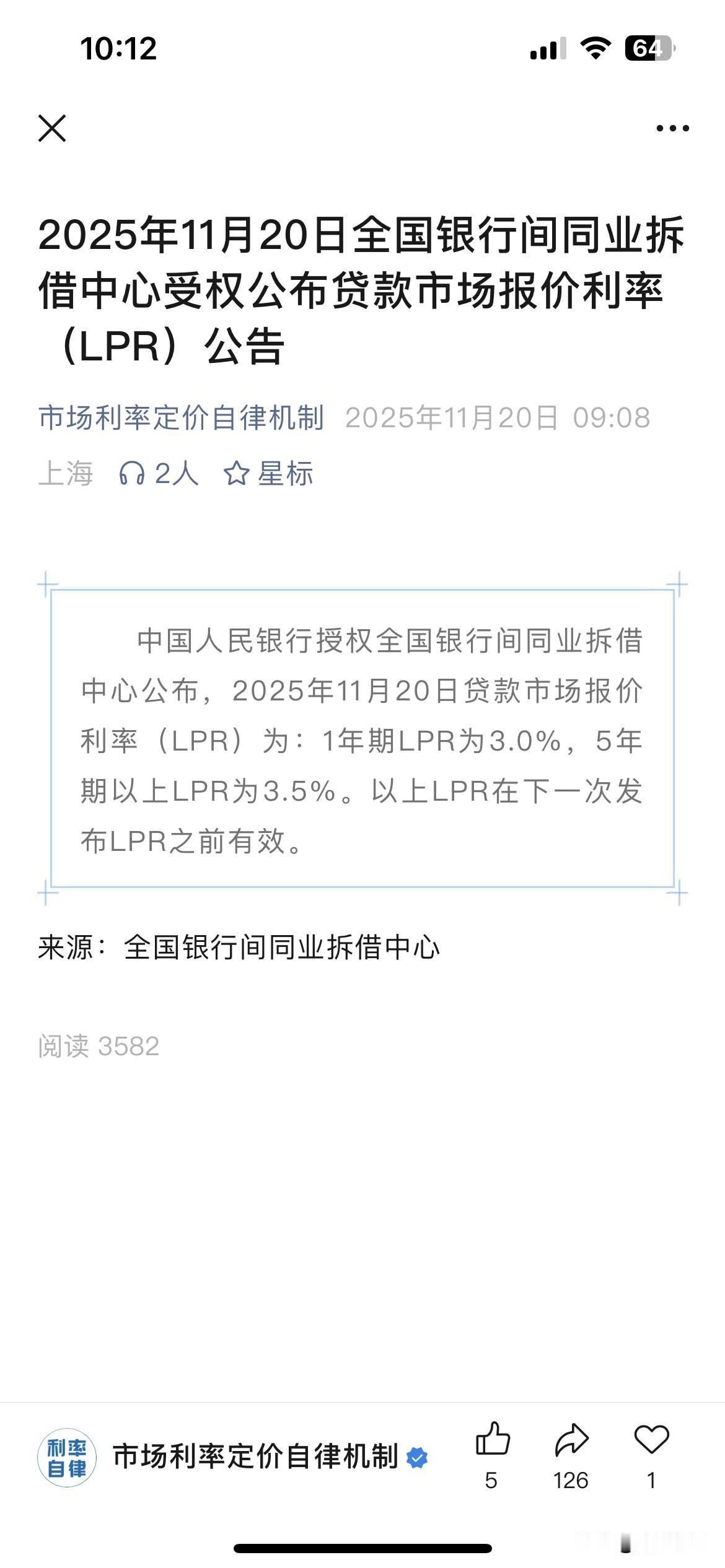 25年11月份的最新LPR公布,保持3.5%不变。 很多人期待的新的一月的LPR仍然保持不变,也就是说你的房贷利率继续保持不变。 大概率已经趋于稳定了,他们以为最坏的时候已经过去了,用他们的话说,目前正保持良好向上发展。 不要对房贷利率抱有太大的幻想,我们能做的就是好好工作,好好挣钱,攒钱。 房贷利率 房贷利率下调
