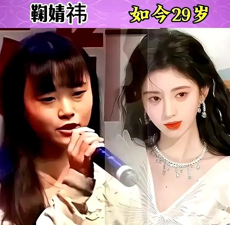 女星前后变化,鞠敬伟、杨紫像换了一个人。 分享几张娱乐圈当红女星前后对比照片,你觉得哪位变化最大呢?先来认识这几位明星,她们分别是赵露思、杨紫、鞠敬伟、赵丽颖、谭松韵以及倪妮。 有一说一,像赵丽颖、倪妮、谭松韵几乎没有太大变化,赵露思相对前三人略微有点变化,但几乎能分辨以前的样子。 再来看看杨紫,杨紫童星出道,凭借《家有儿女》中的小雪让大家熟知。小时候的杨紫乖巧可爱,青少年时期胖胖的,脸上带着满满的婴儿肥,而且那会的杨紫皮肤略黑。 所谓女大十八变,越变越好看,显然,杨紫就是很好的典范。现在的杨紫光彩照人,皮肤晶莹剔透,五官精致的她被很多人奉为自己的女神。 有目共睹,几人中变化最大的自然是鞠敬伟。早年间的她长相平平,气质也不是特别的出众。几年的蜕变,鞠敬伟完成了华丽的转身,摇身一变成为4000年不遇的美人儿。 作为4000年才出的美女,她五官精致立体,笑容温暖明媚,皮肤白皙通透,身上散发着无限少女感与优雅的魅力。 除此之外,鞠敬伟的气质别具一格。‌温婉典雅、清冷疏离,同时又带着一丝甜美。如此鞠敬伟也成功入选全输最美百大女星的行列。