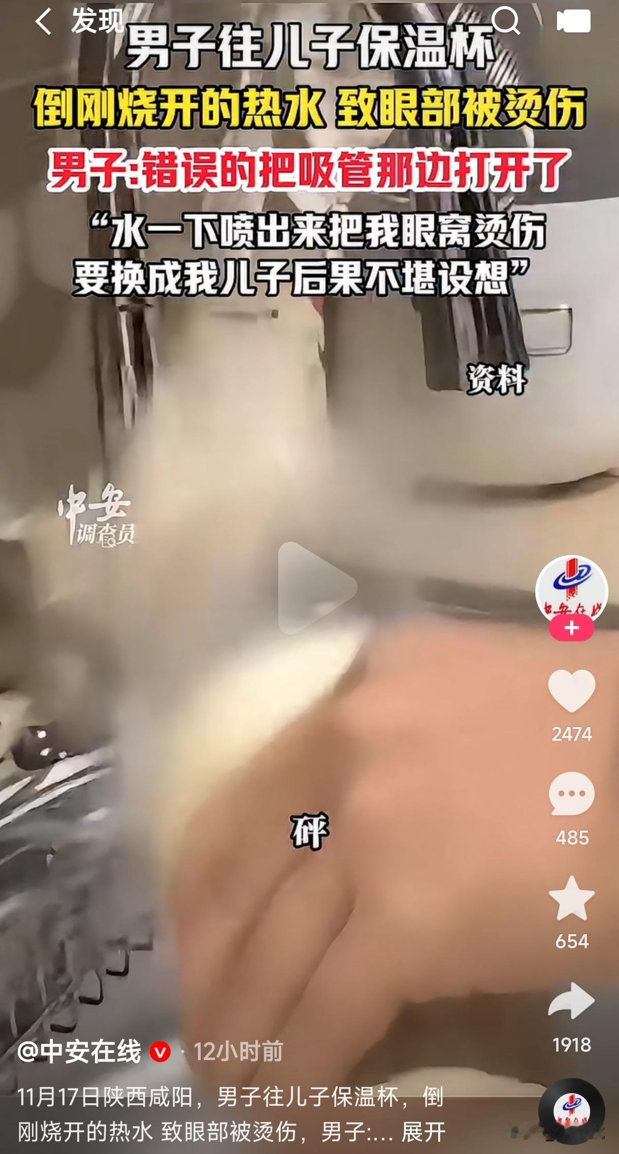 刚烧开的水能往带吸管的保温杯里倒吗? 陕西一男子把刚烧开的水倒进儿子的保温杯里,想着把杯子烫一下,没想到打开时爆炸眼睛被烫伤。 这男子究竟是有多蠢,刚烧开的开水倒进其它保温杯里打开盖子肯定没什么事,但倒进带有吸管的保温杯里肯定不行,尤其是把带有吸管的那边打开瞬间就会爆炸,他不知是如何想的,温度那么高的开水他倒进杯子,然后在揺了几下,却把带有吸管的那边打开,不爆炸烫伤他才怪呢。 万幸的是男子把自己自己烫伤了,这如果装满开水,孩子带到学校去,他瞬间打开带有吸管的那边,那爆炸了岂不是把孩子烫伤了,那后果想都不敢想,有可能还会伤及无辜,真是不幸中的万幸。 谨记刚烧开的开水不能倒进带有吸管的保温杯里,必须要晾一会才行,就怕有的杯子保温性能好,打开的那一刻万一爆炸被烫伤。