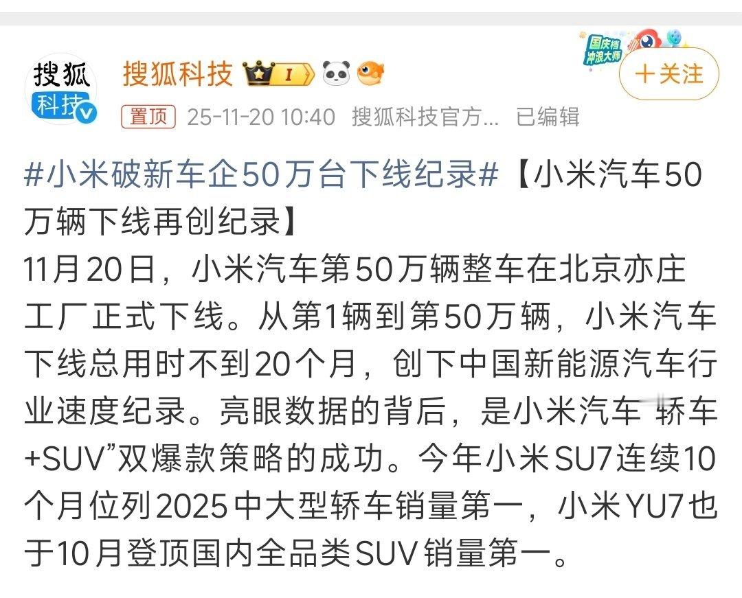 小米第50万台新车下线,现在应该没人说小米造车不会成了吧?