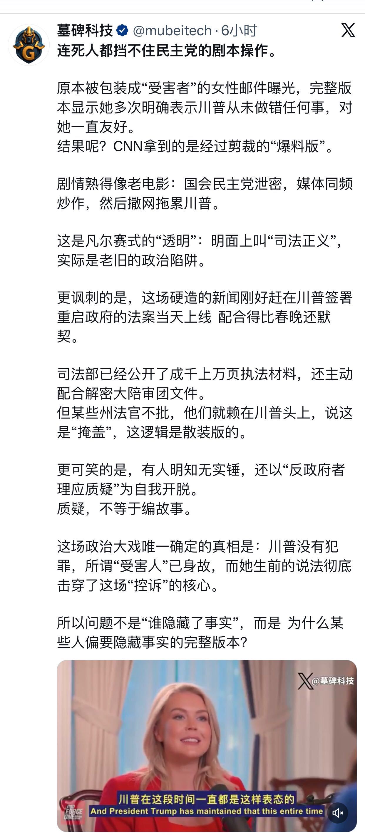 前段时间还有个弱知的大V,就公布爱泼斯坦案的贴子挂我来着,孟德,你再出来说句话。