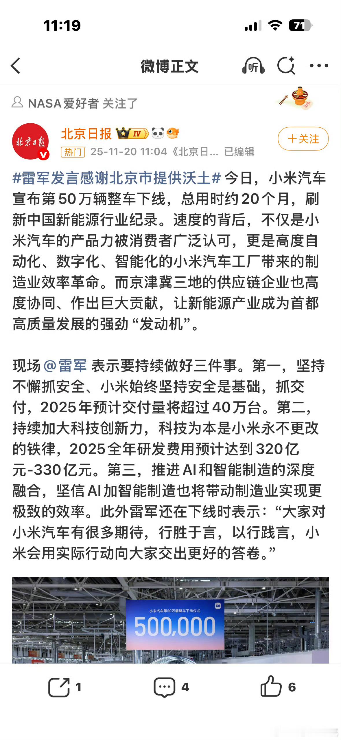 我米汽车50万辆交付,可以说是里程碑增长,首先是产业生态协同成竞争关键,高效产业朋友圈取代单一企业较量,京津冀产业链紧密协同与数字赋能智能制造构成核心驱动力。其次是城市产业转型样本价值凸显,北京依托研发+制造双轮驱动,打破互联网强、制造弱刻板印象,灯塔工厂成为新质生产力实践标杆。最后是政企协同优化发展沃土,市区两级政府精准服务为企业创新松绑,北京智造金名片加速新能源汽车产业向全球价值链顶端跃升。要知道,从0到50万这样的速度,既是科技与制造深度融合的成果,更是中国高端制造业突围的缩影。