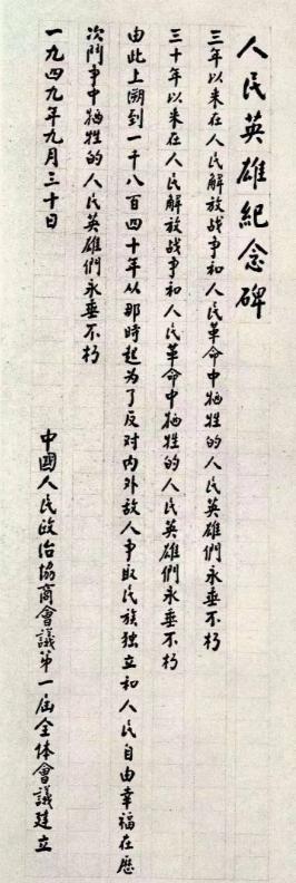 人民英雄纪念碑开工以后,林徽因认为碑文应该用楷体来写,但具体由谁来写犯了难,时任