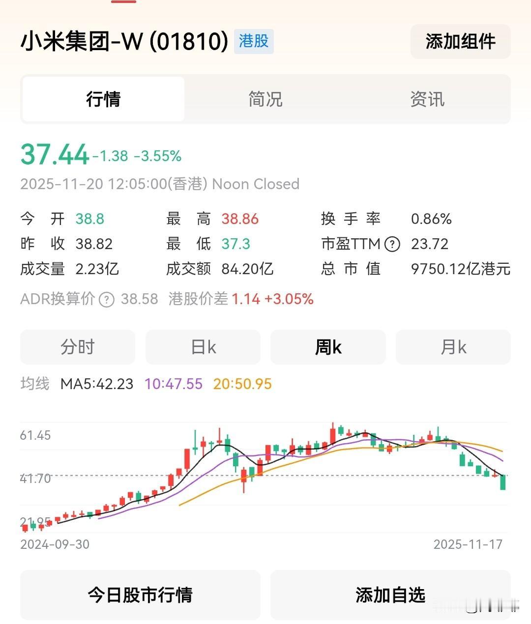 今天小米股价又在继续下跌! 目前报价只有37.44港元每股 由于股价持续下跌,小米股价市值已经不足万亿! 如今小米市值仅剩9750亿港元 如此有规律且每天稳定下跌保持在 3%左右,我严重怀疑 小米被外部资本做空了! 如果是正常被舆论波及股价,一般只会短暂下跌,然后就会慢慢回升。 其实舆论对于像小米这种大型企业的股价是不会有太大影响,一般投资者也不会太在意网络舆论,他们在意的永远是该公司的盈利能力! 小米这次的危机远不止内部的舆论压力,可能还有外部针锋相对!