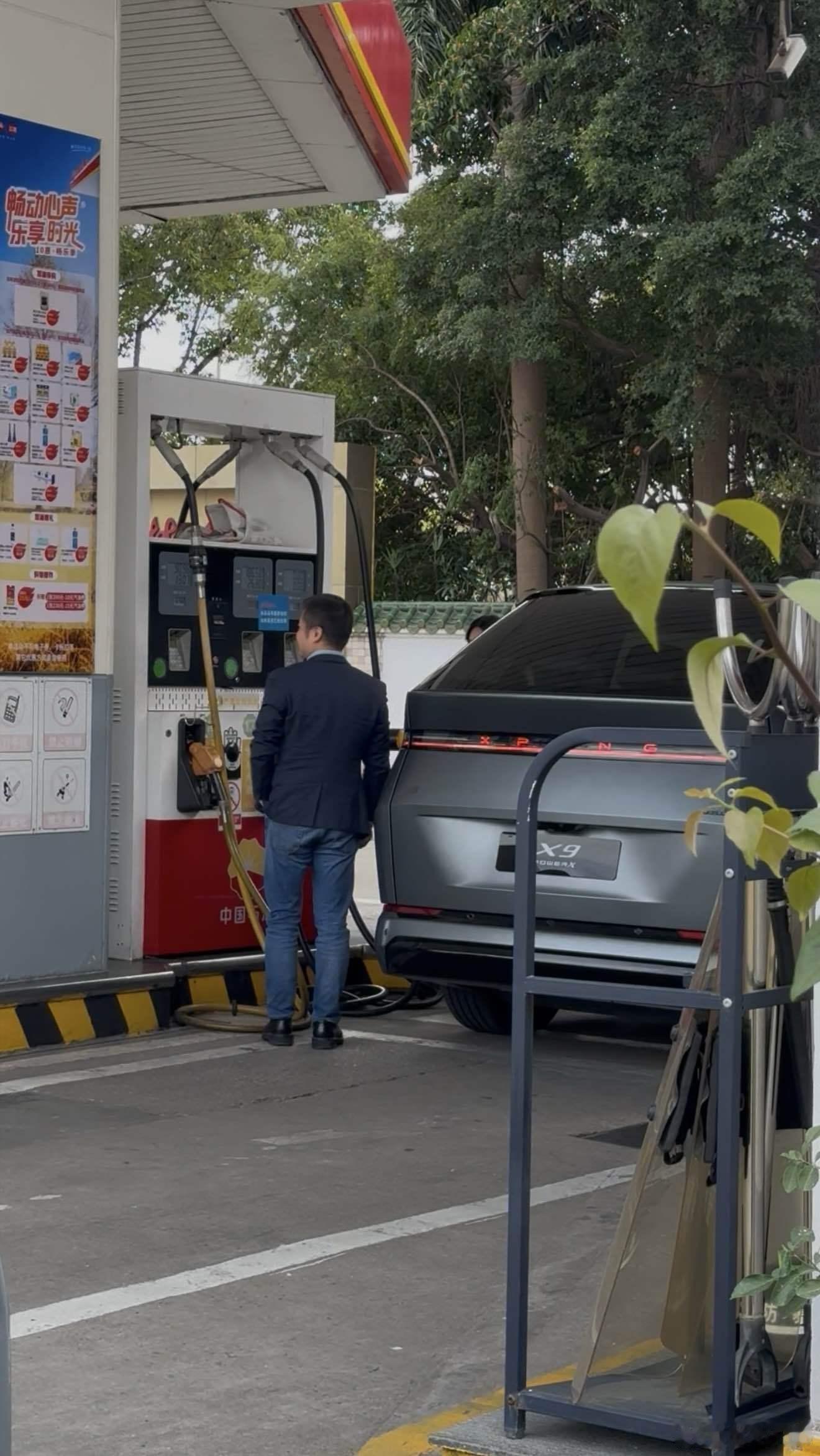 小鹏X9下一代增程今晚上市!早上,何小鹏大师兄为一台X9超级增程加满第一箱油,满