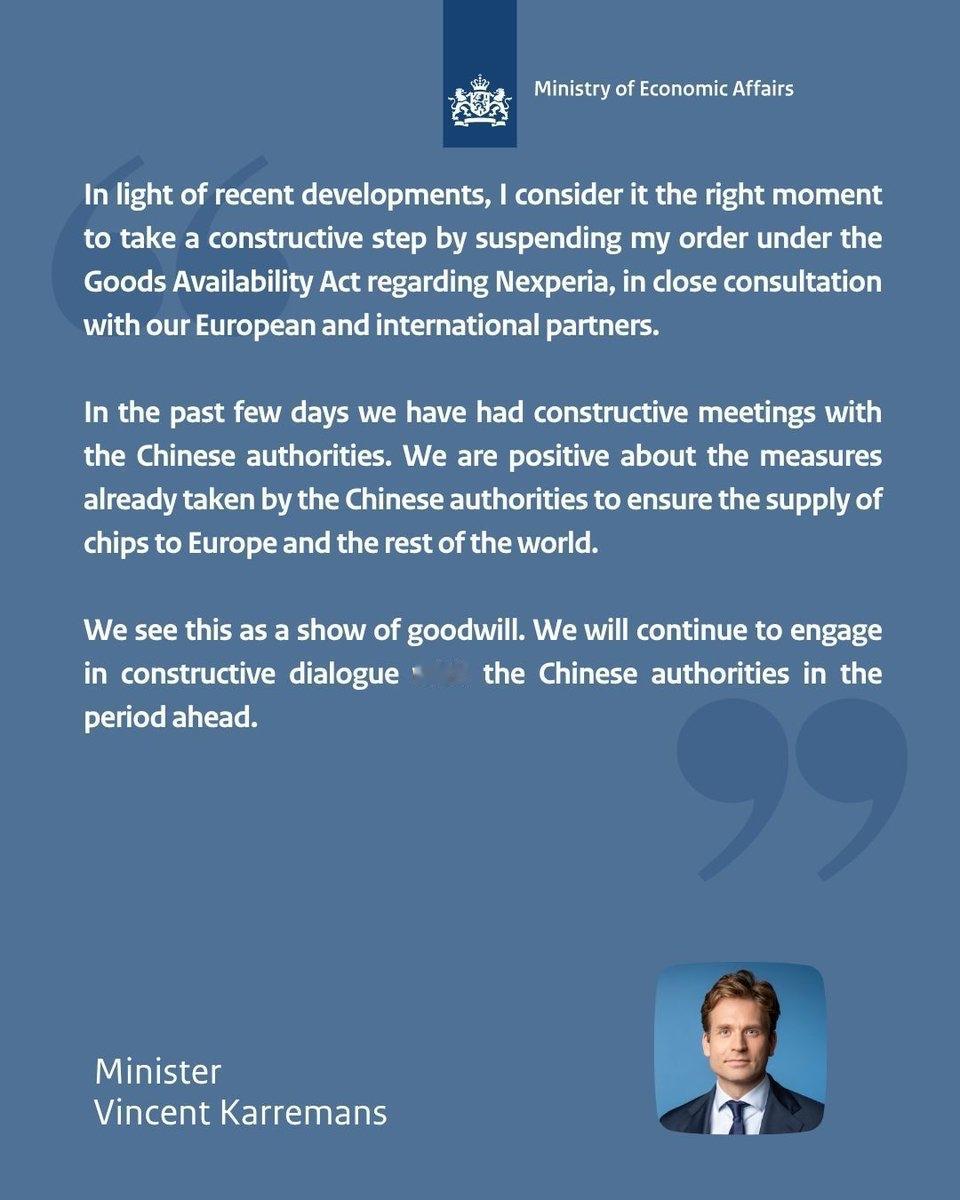 庆祝,又一个胜利!荷兰政府撤销了之前抢夺Nexperia控制权的命令,将其交还给
