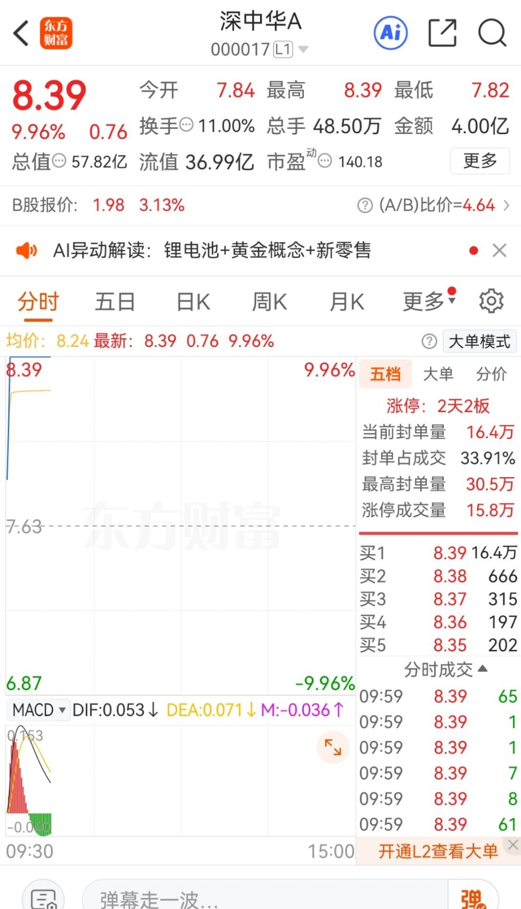 早上分享的福利票—000017已经涨停把握不准的可以私聊我喔~