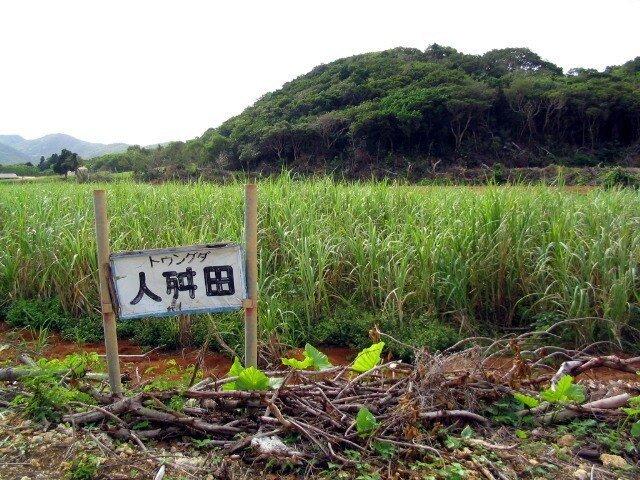 五月十七日,萨摩军带着尚宁王及一百多名琉球贵族返回萨摩。翌年五月,萨摩藩主岛津家久带着尚宁上江户觐见将军德川秀忠,显摆自己的“武功”,途中还在骏府城拜见了闲居在该地的德川家康。1611年尚宁王被放回琉球,在释放之前,萨摩强迫琉球割让了喜界、大岛、德之、与论、冲永良部等5岛,并对琉球领土实施了检地,将琉球的石高定为123000石,其中北方五岛35000石由萨摩藩收为己有,南部琉球王国残余领土的88000石产量中,每年要向萨摩缴纳8000石,5万石为琉球王自用,其余作为诸官俸禄。 在萨摩入侵前不久,奄美大岛的居民从中国大陆偷偷学来了制糖技术,不料这却成为了祸害的根源。当时黑砂糖(红糖)在日本属于非常贵重的商品,因此萨摩吞并奄美大岛后,为了增加财政收入,将岛上15至60岁的男性和15到30岁的女性都搜括为“作用夫”,即奴隶劳工,一个男性劳工的身价是1500到2000斤糖,女性为700到1000斤。奄美大岛和附近岛屿上的稻田全部被征用,改种甘蔗,提炼黑砂糖,然后贩运到日本高价出售。岛民匮粮,不得不以红薯和苏铁果实充饥,苏铁果有毒,许多人因烹饪方法不当而中毒死亡。在萨摩的残酷统治下,琉球北方五岛成了“黑糖地狱”。 1610年八月,萨摩藩将明朝赐给琉球的王冠、王服进献给德川幕府,但是幕府一方面奖赏萨摩,另一方面也命令萨摩不可改动琉球的旧制。幕府之所以保留琉球,除了顾忌琉球宗主国中国的反应外,更期待一个名义上独立的琉球可以充当中日贸易的中介人。萨摩虽然在形式上和名义上保留了琉球的独立,但是规定了琉球每年必须进贡的数量和金额。在残酷压榨下,每年要向萨摩提供大量的大米、芭蕉布、黑糖、牛皮,以及琉球本身并不出产的棉花、苎麻、木耳、胡椒、菜籽油等贡物。 为了征集贡品,琉球不得不在各岛上实行人头税制度,轻则导致岛民流离失所、弃家出逃,严重者如南方的与那国岛,岛民更是被迫采取“人桝田”(tounguda,图3)的残酷方式来减少人口——人桝田是一块田地,鸣钟之后,全岛15岁以上的男子要赛跑跑到这里。不能在限定时间跑到这里的(通常是老人及病残者)便被杀死,以减少加在岛民身上的人头税。 按照规定,与那国岛每年要交纳折合2000石米的“御用布”,为了避免提高征税标准,其人口长年控制在1万左右。岛上有一处名为“久部良割”(くぶらばり,kouburabari)的天然巨石【图4、图5】,石间有一道深达7米的裂缝,为了减少人口出生数量,怀孕妇女都要被迫跳过这道石缝。裂缝底部人骨累累,成为对萨摩藩的无声控诉。在宫古岛则有一块“人头税石”(nintouzei seki,图6),高1.43米,凡是身高超过这块石头的小童,都成为人头税的征收对象。