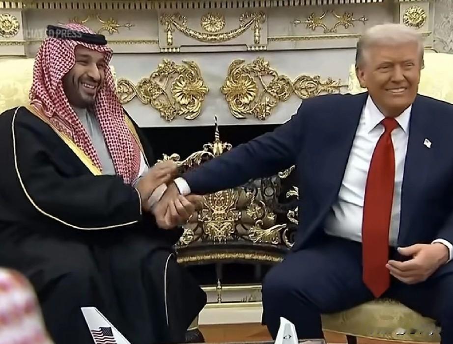 特朗普会见沙特王储,求夸失败,拽过对方的手,“我握住了他的手”。11月18日,美国总统特朗普在白宫会见沙特王储穆罕默德·本·萨勒曼。会谈时,特朗普问王储穆罕默德·本·萨勒曼谁是对沙特最好的总统,王储尴尬笑笑,随后列出了罗斯福和里根,特朗普接着追问“特朗普有把他们比下去吗?”对面的王储尴尬语塞,特朗普拽过对方的手来回拉扯。 特朗普:除了特朗普,因为我已经惊艳所有人了,谁是对沙特最好的总统? 王储:罗斯福、里根。 特朗普:特朗普有把他们比下去吗? 王储:不你!(尴尬语塞) 特朗普:(哈哈笑,拍王储的手,拽过王储的手)我握住了他的手,我才不管你的手谁握过呢!