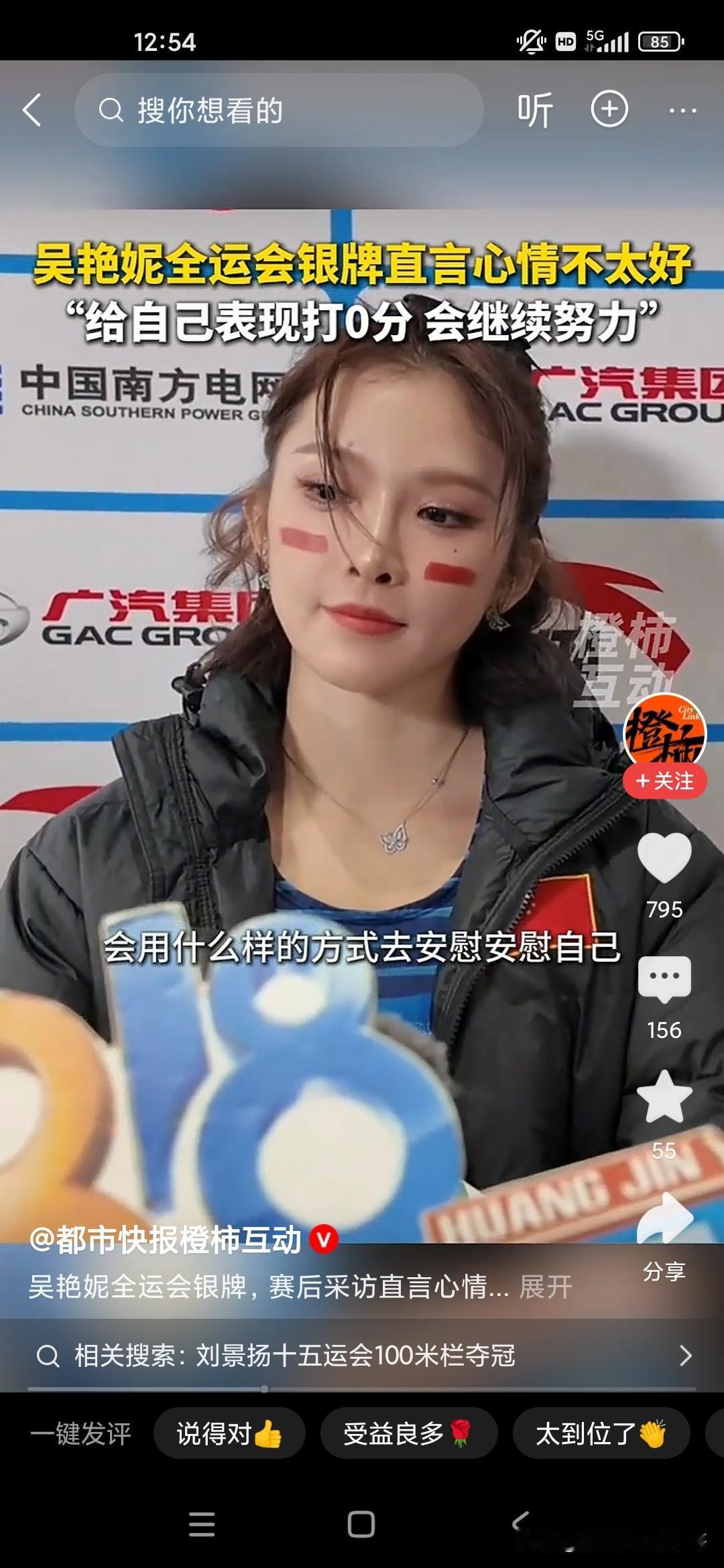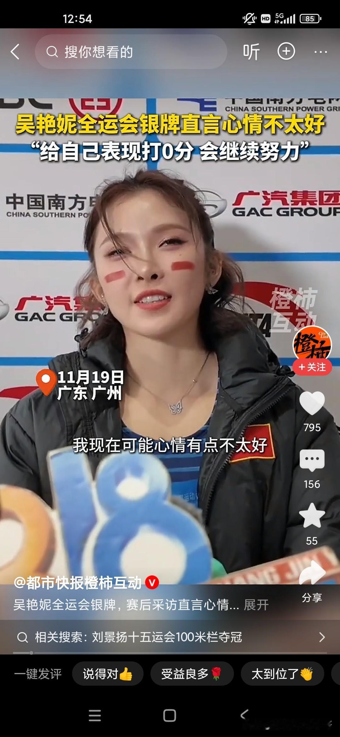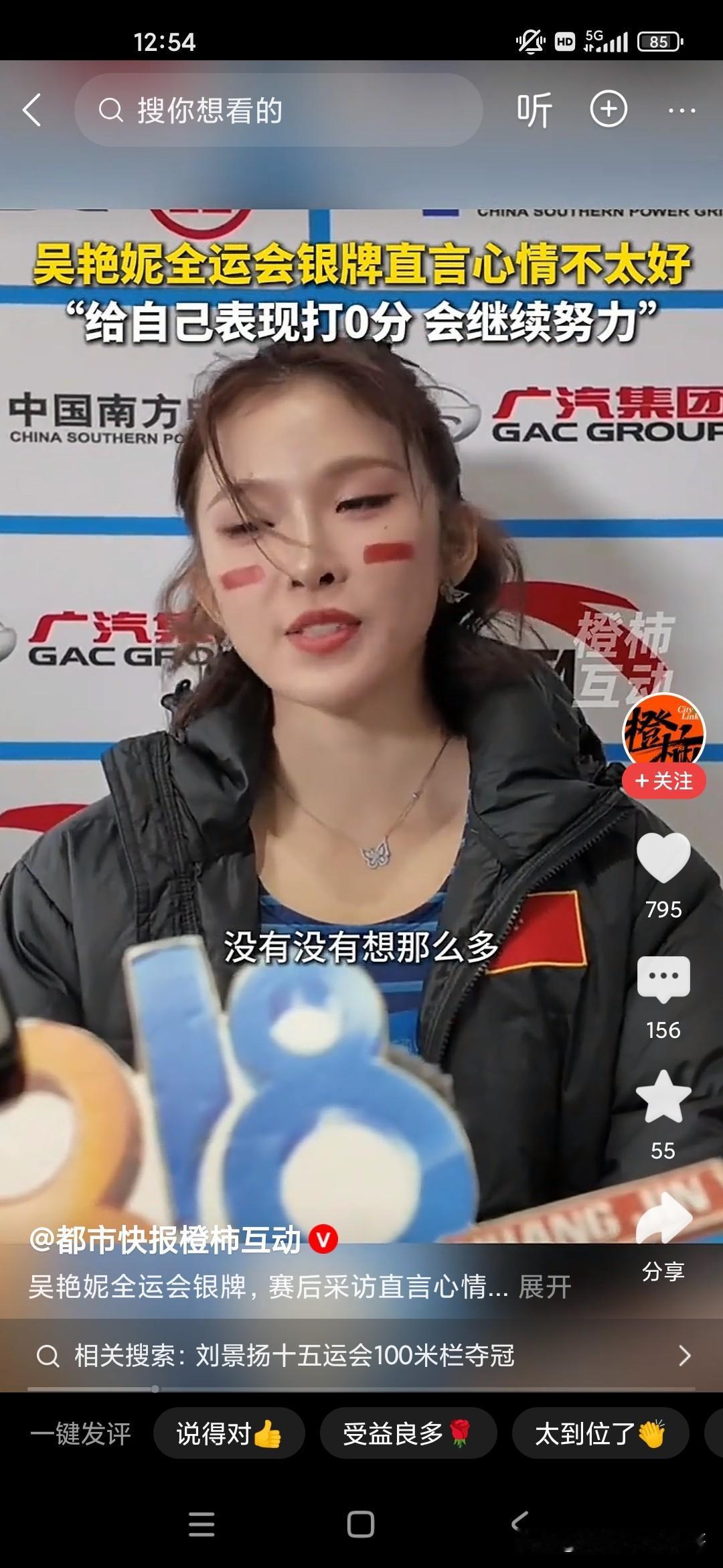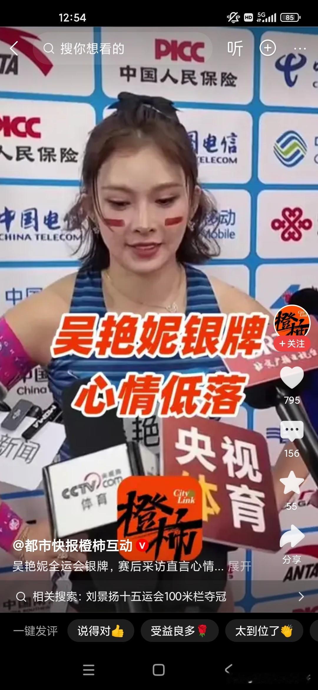 吴艳妮这次在全运会的100m决赛当中获得了银牌,也就是亚军,当媒体面哭的不行,她教练还安慰她胜败乃兵家常事,不要因为这一次失利感到难过,因为之前的话大家都比较看好吴燕妮,她自己在100m决赛跨栏上面还是有非常亮眼的成绩呢,而且还获得了东京跨栏世锦赛的入围资格,但是没有想到这次在国内却翻了船,所以她心情非常难过,其实对我们来说,我们觉得获得亚军已经很了不起了,但是她觉得跟自己心里的预期还是有些差别,最后被广东队夺冠,很多人看不惯吴艳妮,因为觉得她太张扬,把时间和精力这个多多花费到社交媒体,或者说是一些商业代言方面,所以很多人批评吴艳妮,吴艳妮为了回应大家,也为了回击大家的言论,一直想把自己的成绩搞好,只有这样的话才能够经得起非议,没想到这一次获得了银牌!唉,只能说她还有很长的路要走!