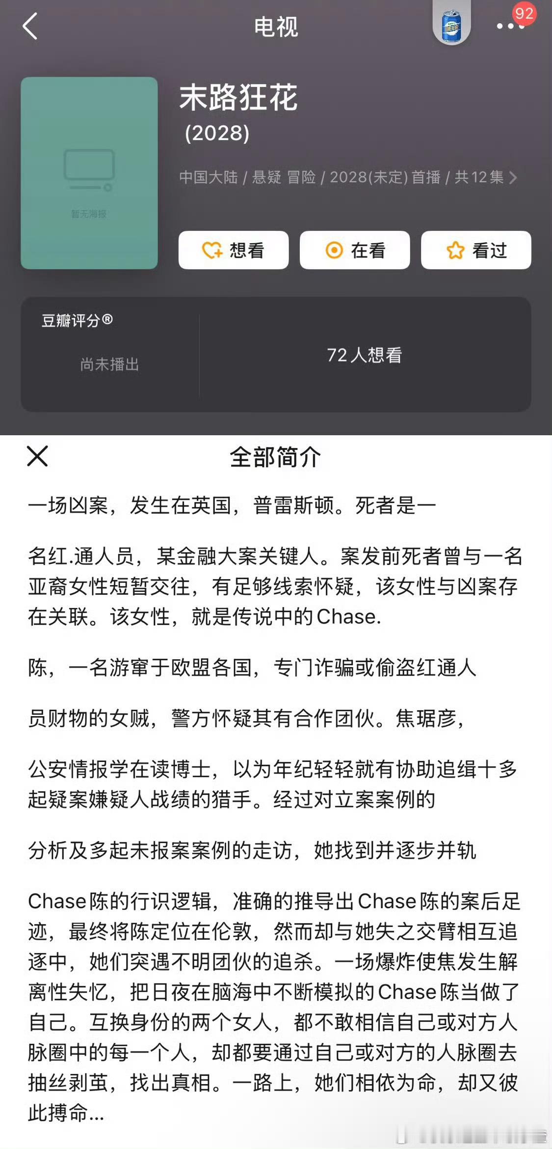 🍉悬疑剧《末路狂花》:杨幂、陈丽君、任达华导演:李骏《摇滚狂花》编剧:张莱《和平饭店》劫富济贫女飞贼X情报专家女警上演猫鼠游戏下个月海南开机