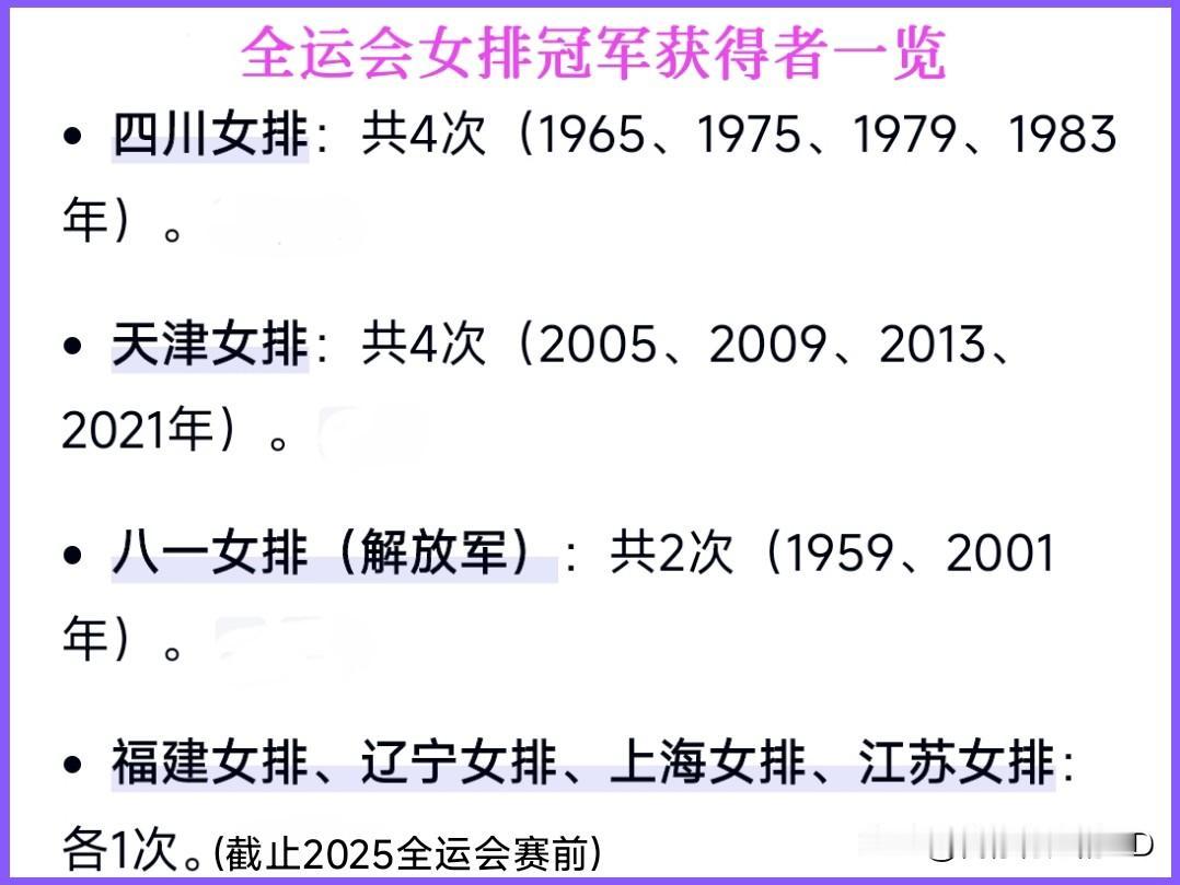 一个朱婷,河南提第6; 一个李盈莹,天津得第5; 半个国家队,江苏稳稳第1! 昨晚,第15届全运会压轴大戏女排决赛在澳门威尼斯人综艺馆上演。前三名最终归属江苏、山东和福建,女排比赛(成年组)就此落下帷幕。 🥇冠军争夺战 凭借雄厚的国家队班底(张常宁、龚翔宇、刁琳宇、吴梦洁、倪非凡等),继3月份夺得女排超级联赛冠军后,江苏女排3:0轻松击败山东女排、以九战全胜战绩再获全国冠军。江苏女排斩获第2个全运会冠军(上一次在2017年),山东女排也创造了队史最佳战绩。 🥉铜牌争夺战 福建女排苦战五局3:2爆冷击败上海女排并完成复仇(小组赛上海3:1福建),继1987年夺得金牌后、时隔38年再度获得全运会奖牌,而上海女排连续两届全运会倒在铜牌争夺战上。 🖐🏻第5名争夺战 继小组赛后再次较量,卫冕冠军天津女排3:2复仇河南女排获得第5名,而河南女排获得第6名创造了全运会最佳成绩。在本场比赛中,国家队两大主攻手朱婷休战、李盈莹伤退。