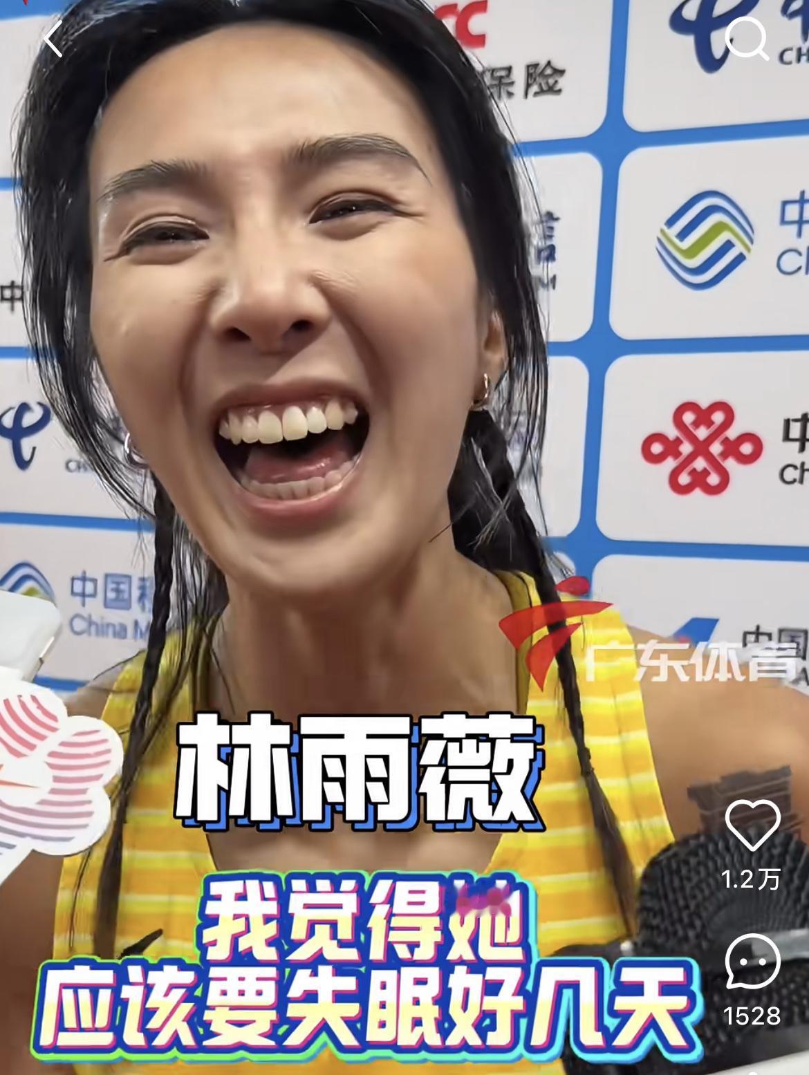 这次100米跨栏吴艳妮第二,刘景扬夺冠。 林雨薇在采访中大笑着说:我觉得她应该要失眠好几天了。 虽然林雨薇自己这次排名第三,但是由衷的为刘景扬高兴。 林雨薇从刚开始比全国赛的时候就和刘景扬一起,那时候刘景扬还没有现在那么强,中间也停滞了很久。 林雨薇说稍微在细节上抓住一点,就可以有很多提升,非常非常恭喜她。