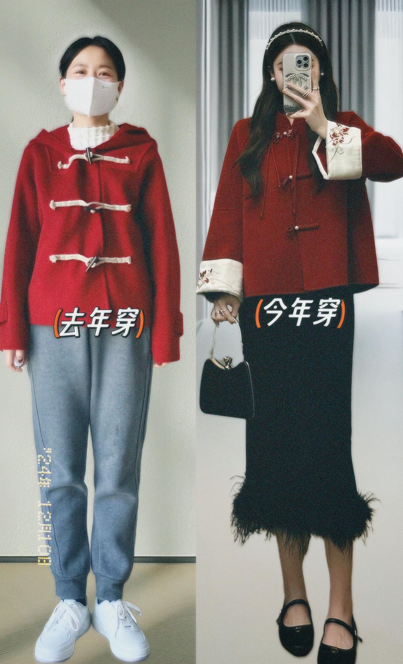 我的新年战袍太美啦!姐妹们,年末都去穿这套新中式套装!过年过节就要穿红色!中国红盘扣毛呢外套➕黑色毛毛半身裙,一整套上身遮肉显瘦温柔气质,直接将新年氛围感拉满了!在年味渐浓的冬季里,红色代表喜气和美好,无论是日常通勤还是逛街约会都能让你脱颖而出,小个子姐妹梨型身材微胖姐妹都可以轻松驾驭!赶紧为自己准备一套美美过年吧!新中式穿搭 新年战袍 美出高级感 过年穿什么