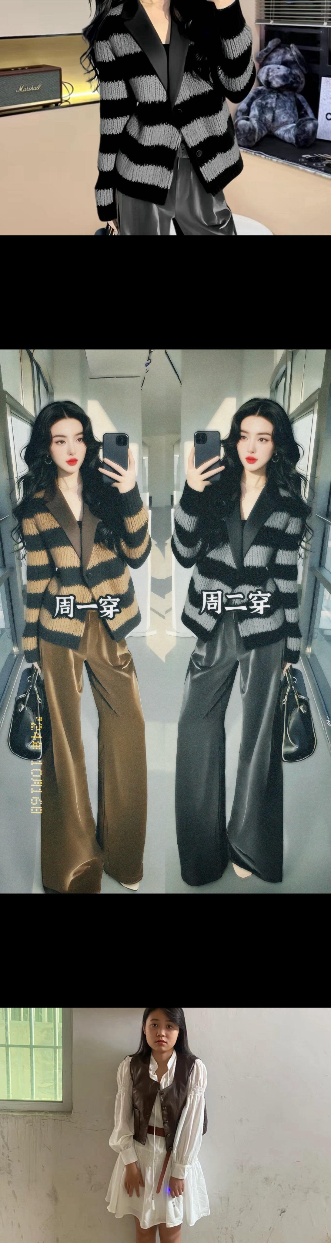 秋冬气质穿搭来咯!姐妹们知道小香风灰色条纹外套,长裤子套装简直美价了,高级感十足,气质妥妥拿捏,同时还超级减龄哦。灰色条纹经典又时尚,怎么穿都好看,穿上这一套出门回头率超高,爱了爱了,日常通勤约会。轻松驾驭。秋冬穿搭摆脱路人感 又酷又飒的早秋ootd 遮肉显瘦减龄 美出高级感