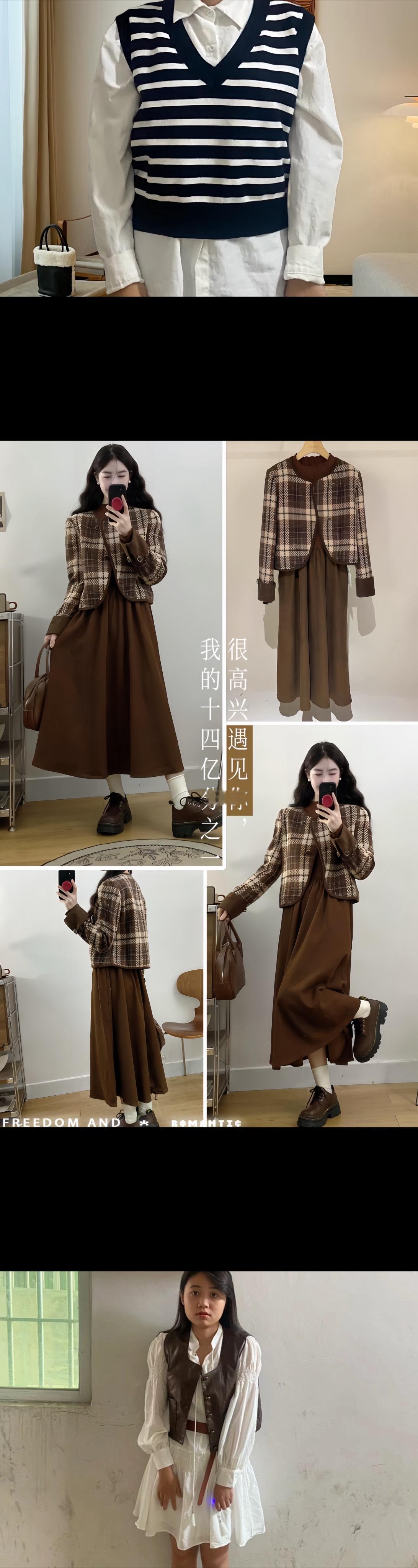 秋冬复古法式高级感穿搭~姐妹们,都去穿这一套,复古又时髦,经典又耐看。格子外套➕同色系显瘦连衣裙,简直是显瘦神器,轻松打造时髦感,不费力的穿搭太爱了!小个子姐妹梨型身材微胖姐妹都可以轻松驾驭!秋冬穿搭摆脱路人感 搭配你的高级范儿 秋冬一周通勤穿搭指南 秋冬才是韩系穿搭主场