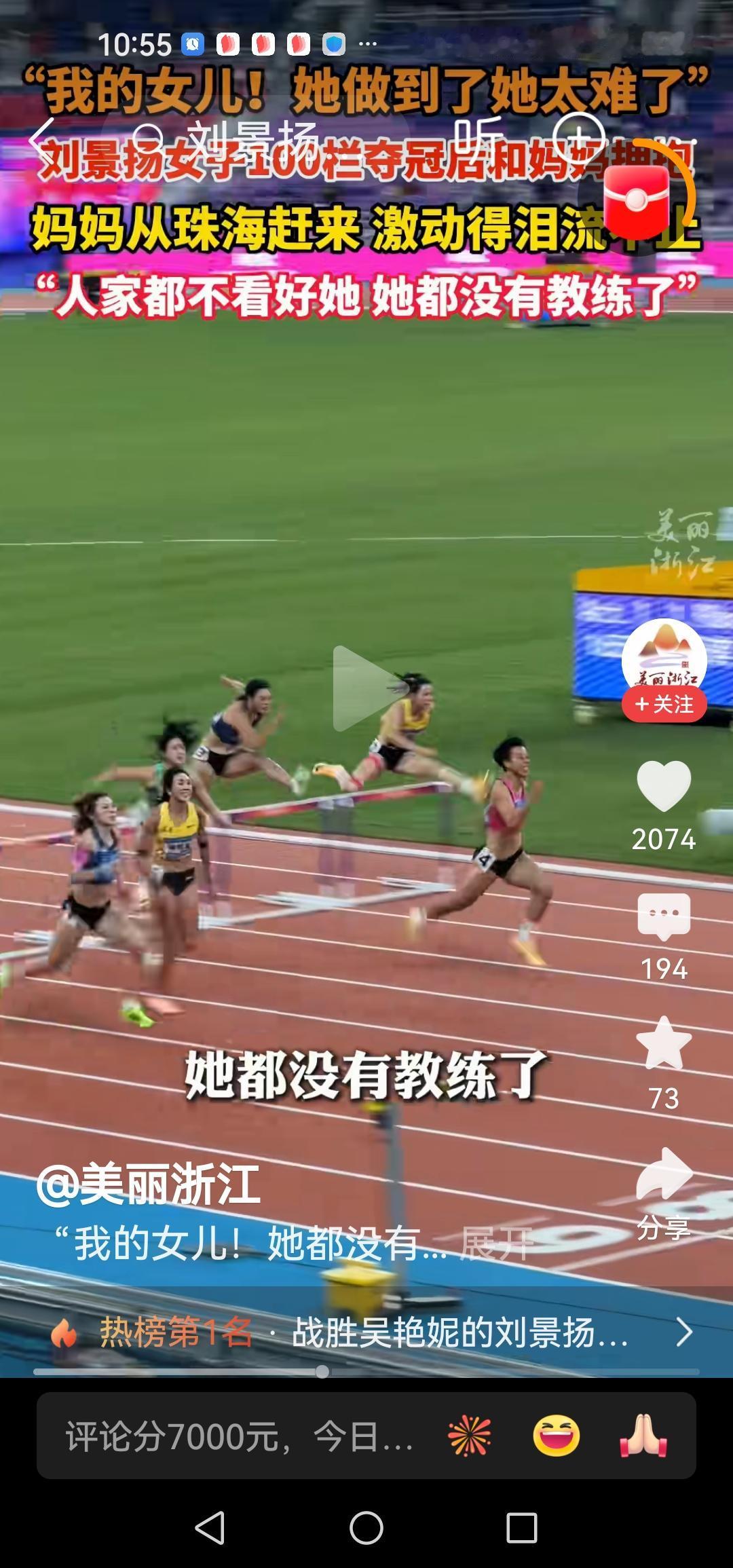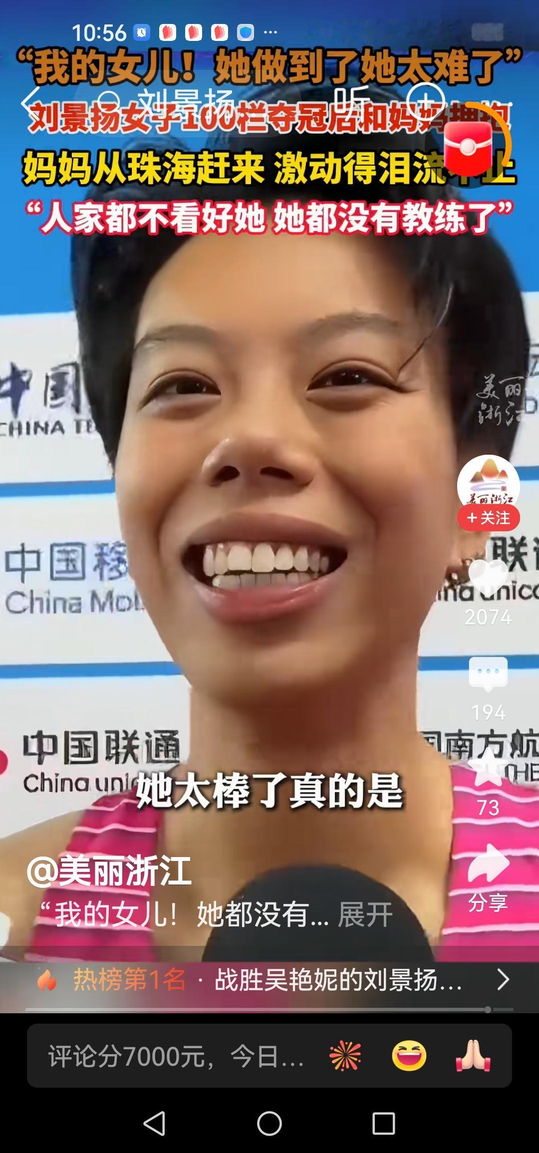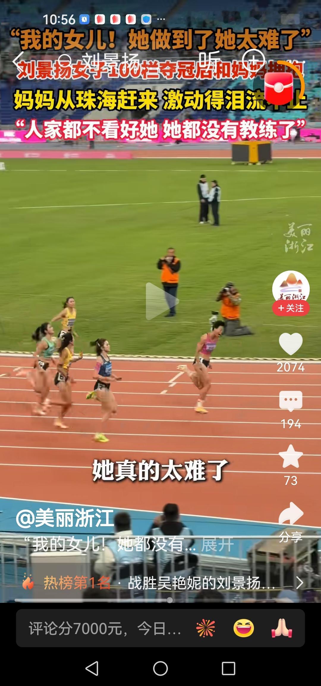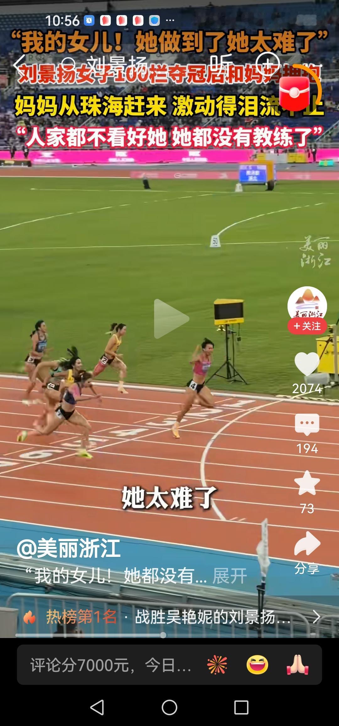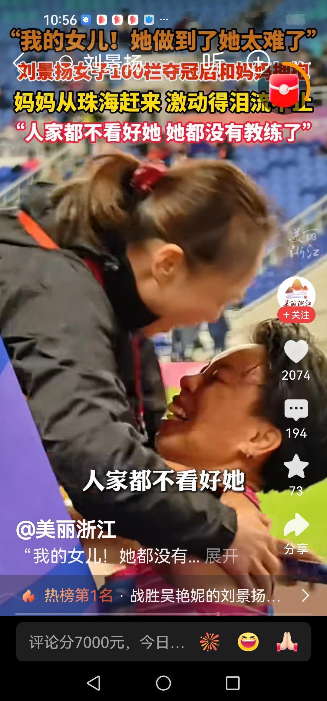 "我的女儿!她做到了她太难了"刘景扬女学工杨栏夺冠 一瞬间有一种想哭的感觉,妈妈说她太难了,夺冠后,这妈妈有多激动就有多心疼女儿,她都没教练呀,她很不容易啊。 突想那首青云志,无人抉我青云志,身处低谷不自弃,我命由我不由天。无人扶我青云志,我自踏雪至山巅。 有志者事竟成,这鸡汤我们都得热一热,得喝一口,给自己来点精神劲。