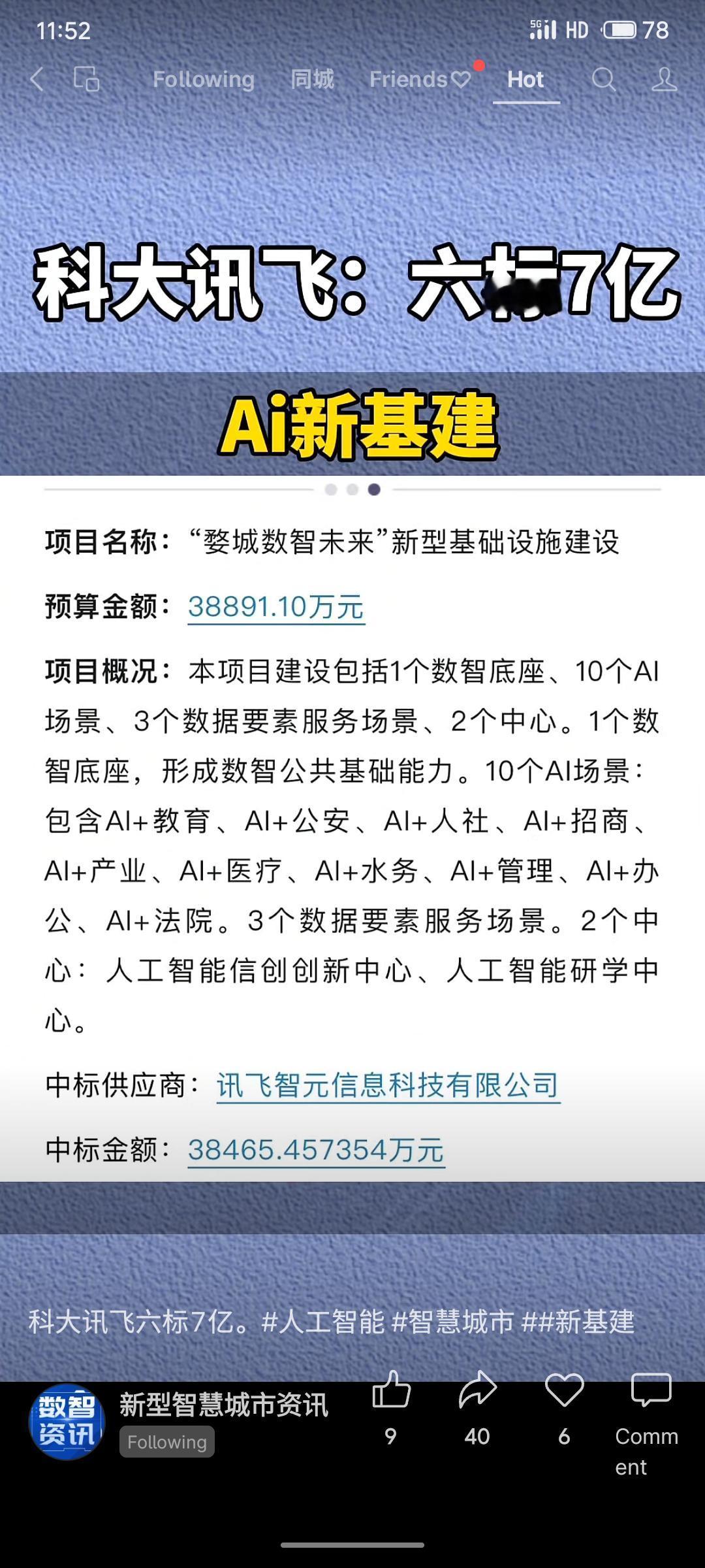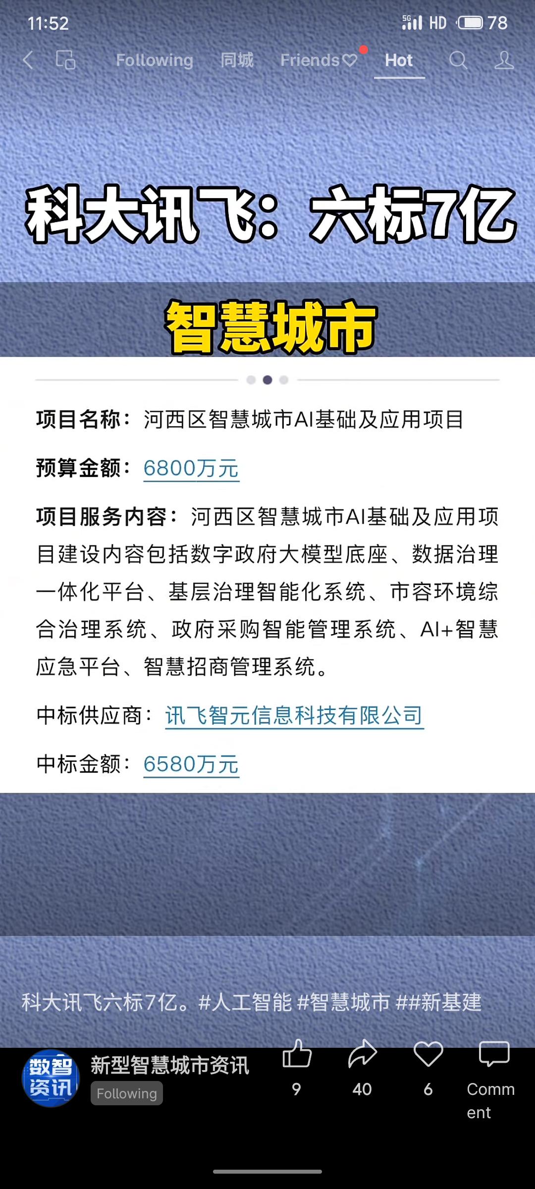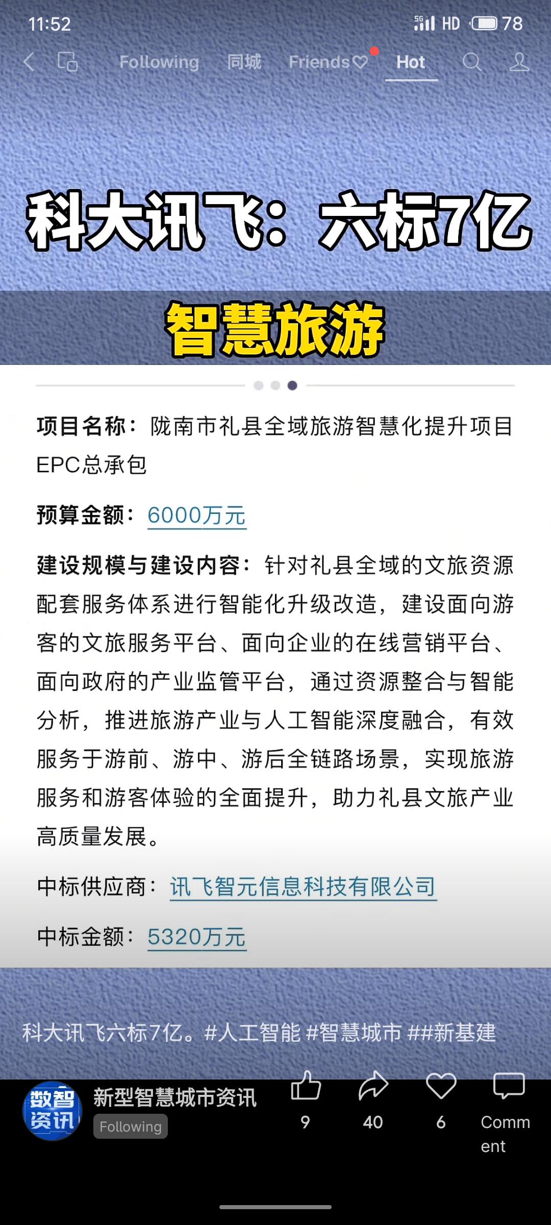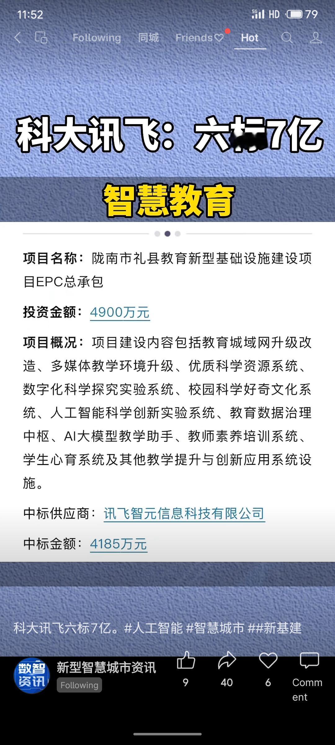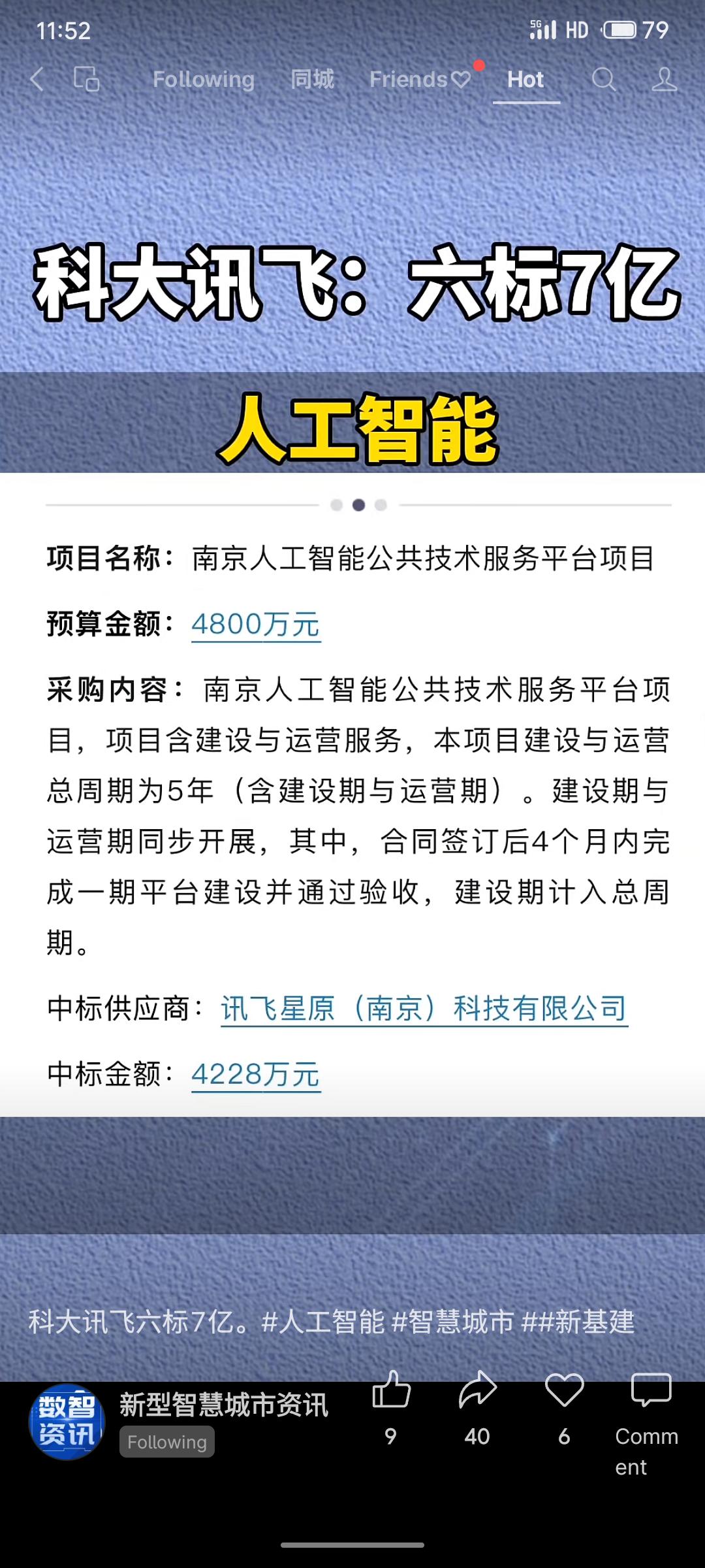 科大讯飞旗下子公司近期连续中标六个重大项目,总金额近7亿元。项目覆盖人工智能基础设施、智慧教育、智慧旅游、智慧园区及智慧城市新基建等领域,包括南京人工智能公共服务平台、礼县教育新基建、礼县全域旅游智慧化、茅台园区智慧安防、河西区智慧城市AI基础应用及"婺城数智未来"新基建项目,彰显其在智能科技应用领域的综合实力。 科大讯飞连续中标凸显其在人工智能应用落地方面的领先优势。这些项目覆盖教育、旅游、城市管理等多个领域,表明其AI技术已实现跨场景规模化应用,在新基建市场占据重要地位。