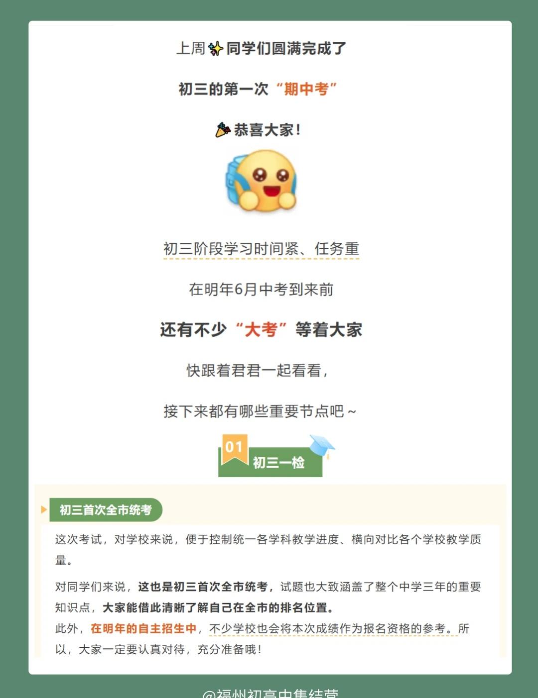 福州初三期中考后时间轴,有这6大节点 福州 福州初三 福州中考 重要时间节点 期中 中考 初中学习方法 中考加油