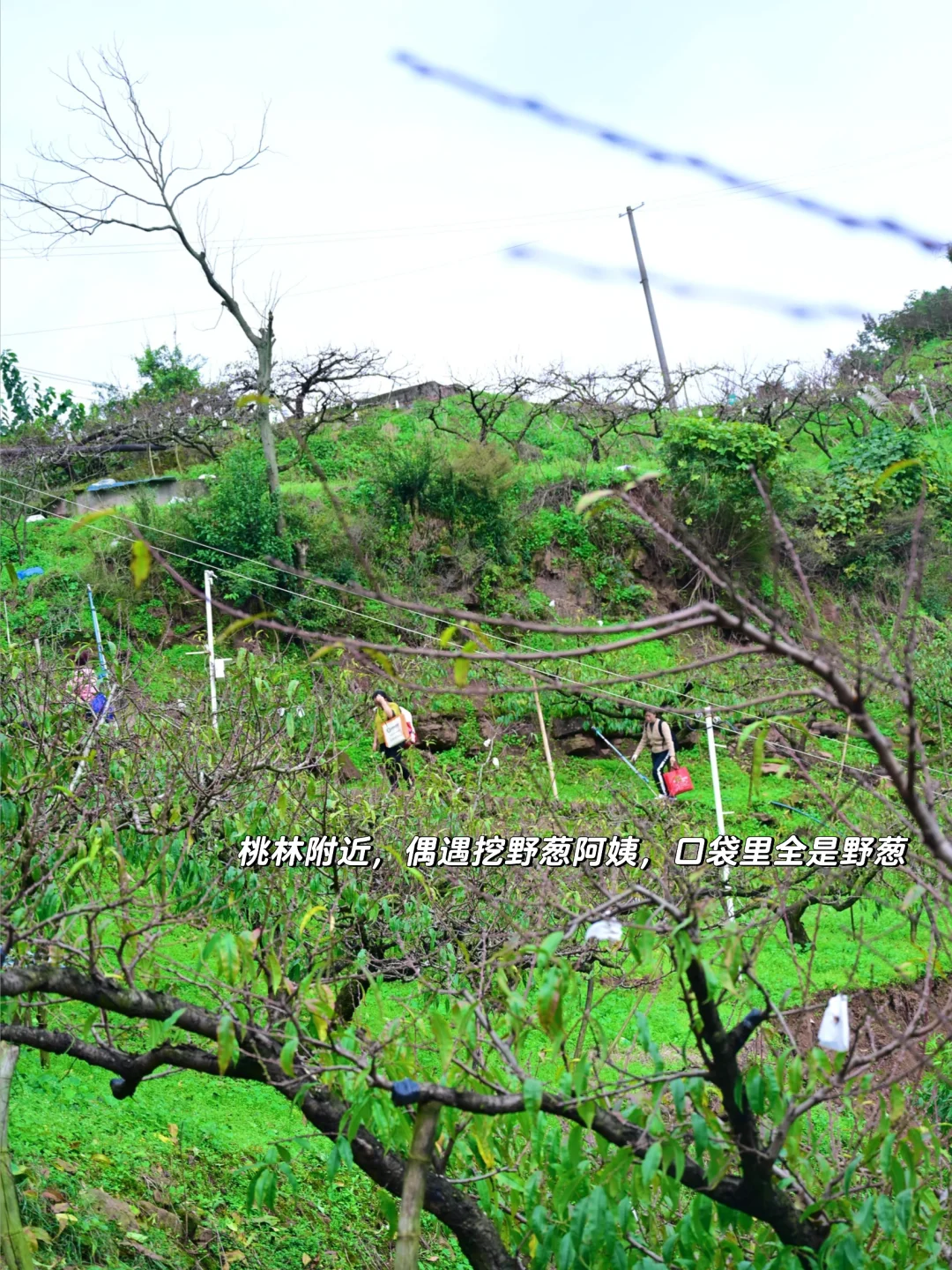 ✅野趣拉满:沿途桃林里藏着挖不完的野葱,空心绿叶香味超浓,娃挖得停不下来