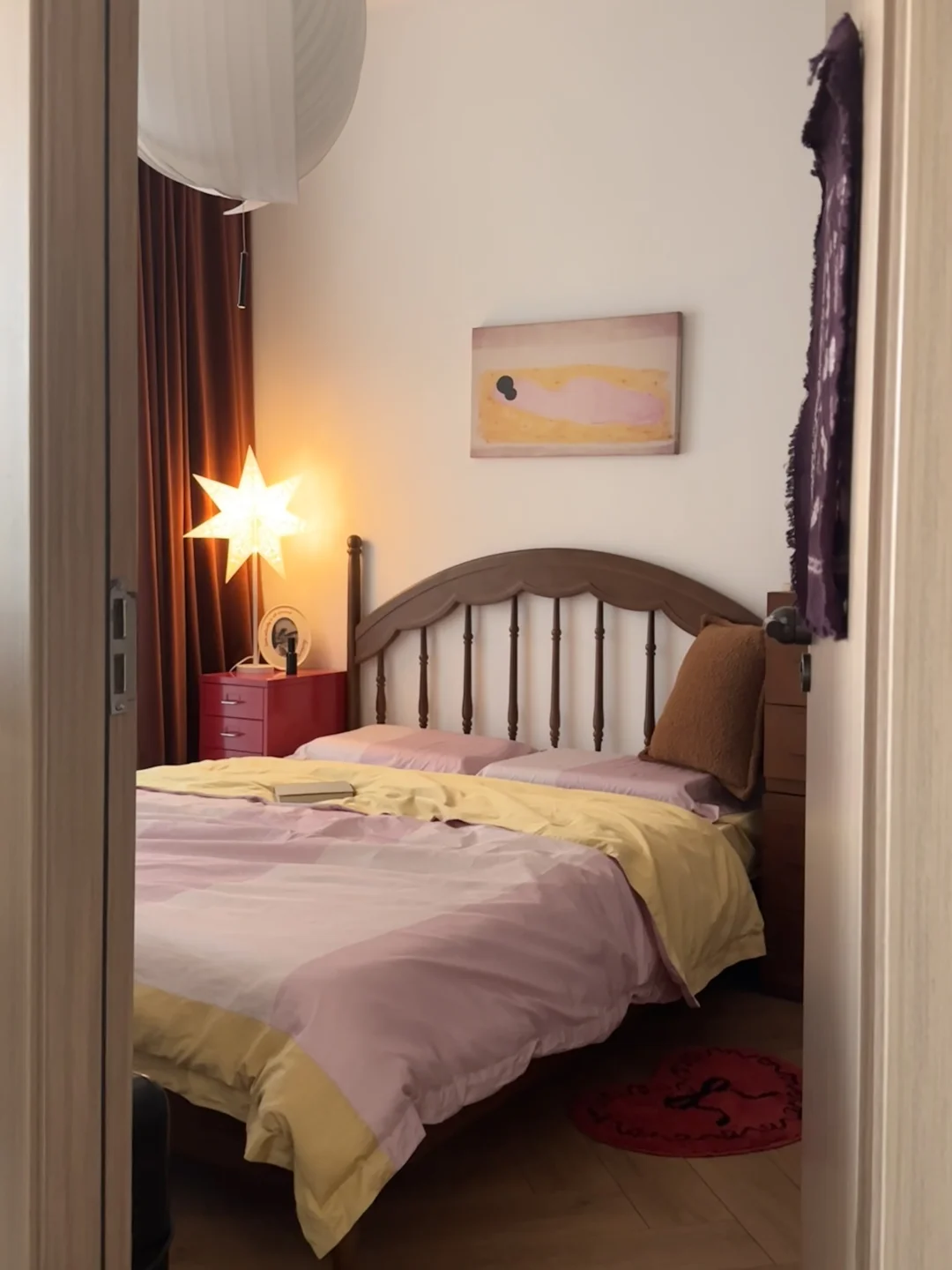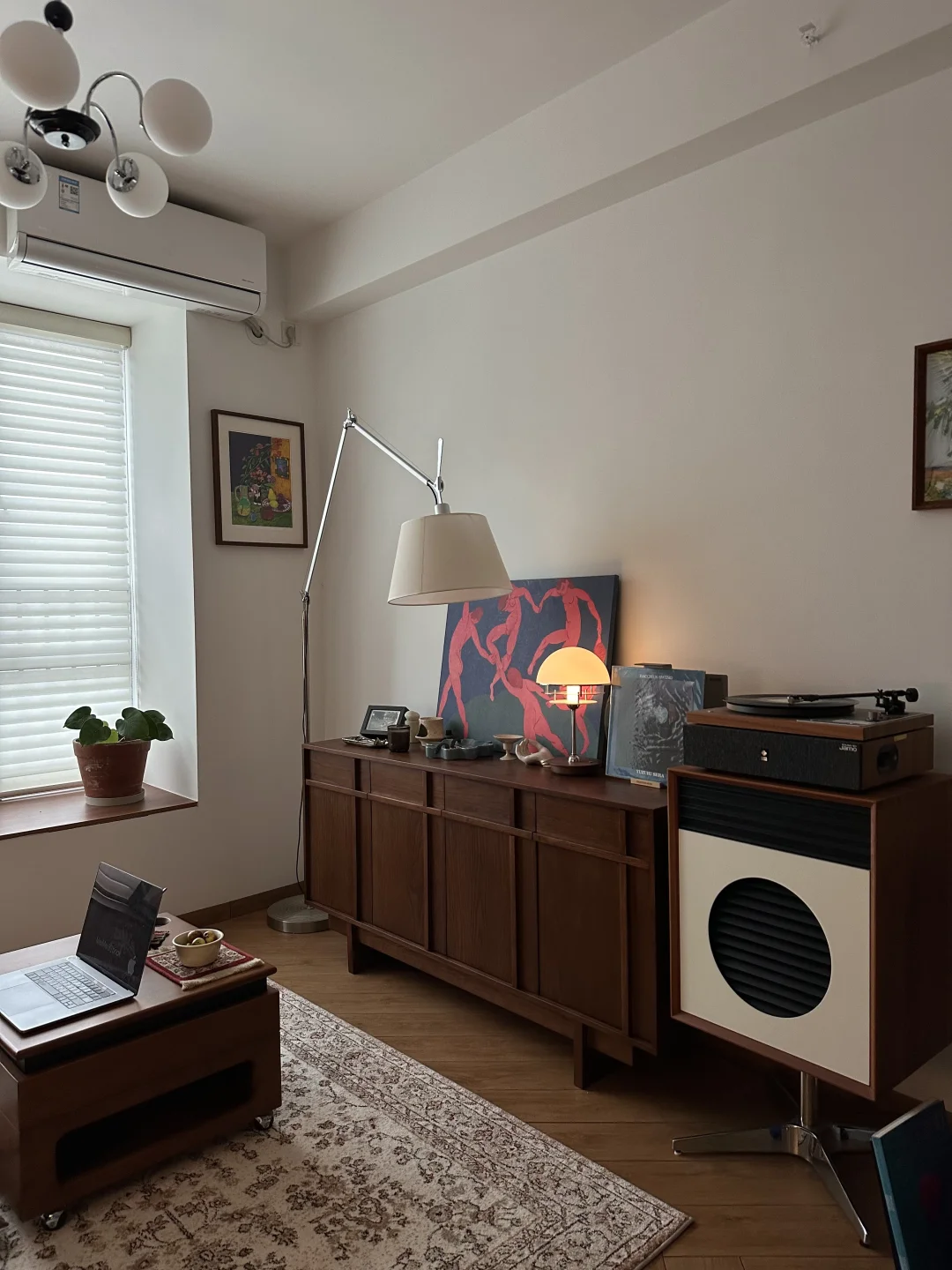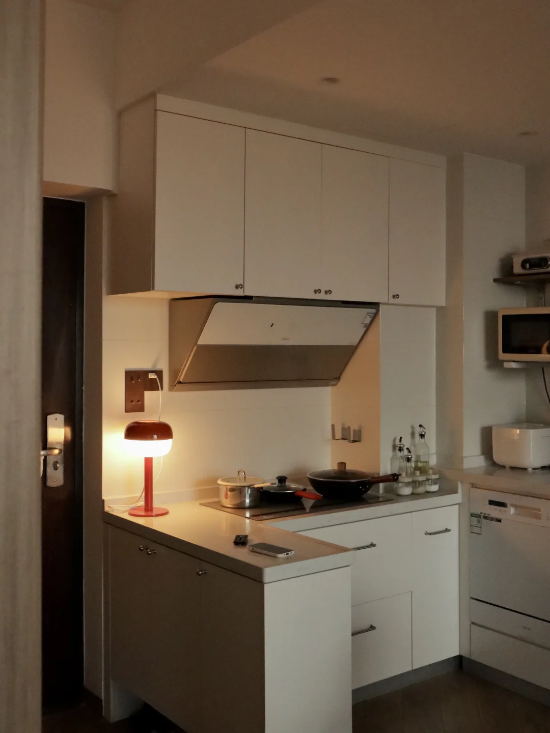 住在一个只有39平实用面积的房子里 很多空间设计考虑其实都围绕着两点: 一是空间开阔,住起来尽量舒服 所以我家没有顶天立地的柜体 也没有做厨房的隔断 能从客厅的一角无遮挡地眺望到另一角 视野开阔开阔了,空间也能显大 第二点就跟个人性格相关了 我很抗拒一成不变、一眼看到头的生活 所以我的家也得满足我的天性: 为了「新鲜感」,空间也要保留可变余地 ▪️除厨房做了定制柜外,全屋其余地方都是用的成品柜。万一以后不喜欢现在的风格和陈设,更换成本也不会高 ▪️全屋大白墙,没有涂有色乳胶漆 其中一个考虑就是为了更换墙面软装时,即使要不断更换钉子的位置,也更好补涂 ▪️客厅大面积留给了地毯和带轮子的茶几 要用时茶几是我的办公桌和小茶台,不用时把它推到一边,客厅就变成了我的休闲空间,方便我练舞、做瑜伽 …… 这些都不是标准化设计 只是刚好适合我 适合我这样的小户型空间 和我这样的人