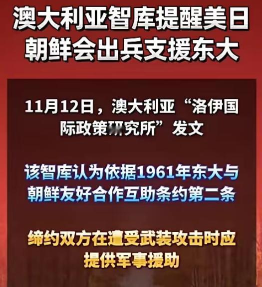 澳大利亚一个智库近日提醒日本说,和中国打起来,朝鲜一定会上的。这个西方智库这一次看起来并不笨,朝鲜肯定会上。 澳大利亚智库这番提醒,看着像是给日本敲警钟,实则戳破了地区安全局势里一层没明说的窗户纸,可能有人觉得这是西方智库在夸大其词,可稍微扒一扒相关背景就知道,这话里的门道真不少,每一句都能找到实打实的依据。 这判断首先就绕不开那份签了六十多年的老条约,澳大利亚智库的分析显然盯上了1961年签署的《中朝友好合作互助条约》,里头第二条写得明白,缔约双方要是遭受武装攻击,得互相提供军事援助。 这可不是空泛的外交辞令,是白纸黑字的法律约束,只要满足触发条件,条约效力就会激活。 现在美日动不动就在台海问题上煽风点火,日本甚至跟着美国喊“台海有事就是日本有事”,真要是走到冲突那一步,日本一旦介入,本质上就是参与了针对中国的武装行动,这恰恰就踩在了条约的红线边上。 光有条约还不够,得有实打实的情谊打底才站得住脚,今年刚好是中国人民志愿军抗美援朝出国作战75周年,这段用鲜血浇铸的历史早把两国绑成了命运共同体。当年志愿军跨过鸭绿江,和朝鲜人民军并肩作战,用牺牲换来了地区和平,这种情谊经过七十多年的沉淀,早就不是普通的国家关系能比的。 朝鲜最高领导人金正恩多次说过,中国人民志愿军烈士会永远活在朝鲜人民心中,这种情感联结可不是嘴上说说。就在今年9月,中朝最高领导人还在北京见了面,为两国关系定了调;之前国务院总理李强访朝,专程去参谒志愿军烈士陵园,绵绵秋雨中的祭奠,本身就是两国立场一致的无声证明。 日本可能没真琢磨过,它跟着美国搞的那些动作,在朝鲜眼里到底意味着什么,这两年美日韩三国的军事勾连越来越频繁,早就把朝鲜的神经绷得紧紧的。 朝鲜国防省政策室长今年7月就发过谈话,痛批美日韩定期搞带有威胁性质的联合军事行动,说这是搅乱半岛周边局势的主要危险因素。美日韩三国今年7月11日还动员了包括B-52H战略轰炸机在内的战机,在半岛周边搞挑衅性空中演习。 同一天,三国总参谋长还开了会,明着要加速推进针对朝鲜的三方军事合作,更让朝鲜警惕的是,美日还在搞“核同盟”那一套,有外国媒体揭露,两国正在密谋东亚战争时使用美国核武器的具体方案,这事儿被朝中社点名批评,说这种危险性绝不能忽视。 朝鲜的性格从来都是眼里揉不得沙子,别人的威胁摆到面前,绝不会坐视不管,朝中社8月的评论员文章里就放了话,针对这种核军事同盟扩张的阴谋,朝鲜必须强化自卫国防力量。而且朝鲜早就亮明了态度,面对侵略性质的军事挑衅,采取反射性反制是自己的正当权利。 现在朝鲜武装力量一直保持着高度戒备状态,用他们的话说,就是随时能阻止美国及其仆从势力的集体挑衅,遏制侵略企图。这种戒备不是装样子,从朝鲜多次试射导弹、组织军演就能看出来,他们的军事准备一直跟着地区局势走,从来没松懈过。 更关键的是,朝鲜这两年已经用实际行动证明了自己的行动力,之前朝军派人去俄乌战场参与排雷工作,在实战环境里展现了不错的军事素养和执行力。 这事儿虽然不是直接的军事介入,但也透露出一个信号:朝鲜的武装力量不是只守在本土,有对外行动的能力和魄力。要是真出现地区冲突,朝鲜完全有能力在远东方向采取行动,比如通过军事部署牵制美日兵力,这对冲突走向的影响可不小。 中朝之间的默契也不是一天两天了,两国同为共产党领导的社会主义国家,有着共同的理想信念,这种政治基础让双方在重大国际议题上总能保持同频。 中国领导人说过,中朝是命运与共、守望相助的好邻居,朝鲜方面也多次表示,不管国际形势怎么变,朝中友好感情不会改。这种高层互信和战略共识,意味着一旦出现危机,双方根本不用花时间磨合立场,这也是澳大利亚智库判断朝鲜“一定会上”的重要依据。 日本要是真把这话当耳旁风,那就是没看懂地区力量的平衡逻辑,美日总想着靠军事同盟压制周边国家,却忘了朝鲜从来不吃这一套。从抗美援朝时的并肩作战,到现在共同应对美日韩军事围堵,中朝的合作早就经受了国际风云的考验。 澳大利亚智库说白了就是点醒日本:别以为对付中国是一对一的事儿,真闹大了,背后还有个立场坚定、军力不弱的朝鲜等着,这笔账得算清楚。 说到底,这不是西方智库在制造紧张,而是把地区安全里的潜规则挑明了,朝鲜的立场、中朝的条约、美日的挑衅,这几股力量拧在一起,早就形成了一触即发的态势。日本要是真敢跟着美国蹚浑水,那就得做好面对连锁反应的准备,朝鲜的介入绝不会是意外,而是局势发展的必然结果。