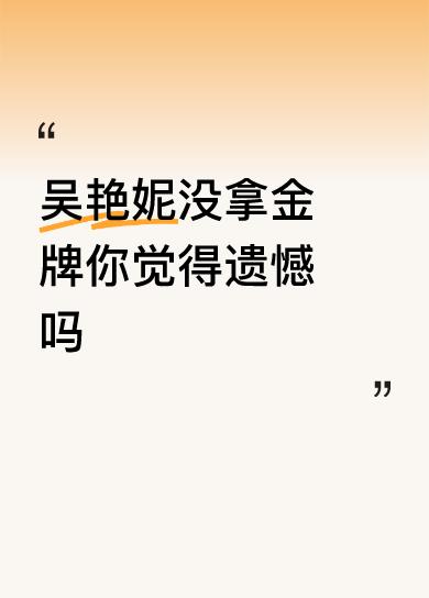 吴艳妮没拿金牌你觉得遗憾吗非常的遗憾,但这并不是说吴艳妮不优秀,而是别人也在努力奋斗,体育比赛的魅力就在于有太多不确定性,赛场上的发挥输赢就在那一瞬间,但对每个运动员来说既很残酷的但又是很公平的。