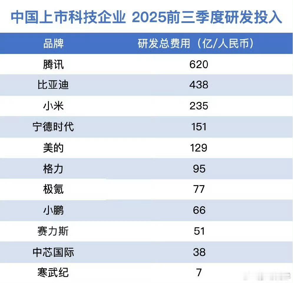 中国上市科技企业研发投入排名前三分别是腾讯、比亚迪和小米。舍得在研发上投入的企业才是真心干实力的企业。