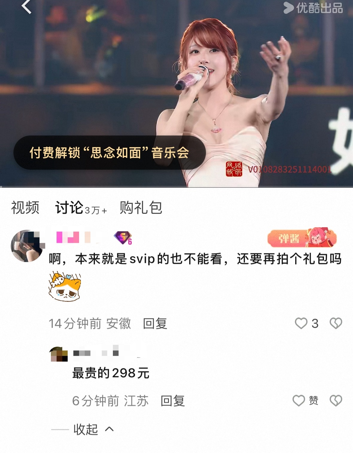 优酷给了赵露思“思念如面”音乐会专栏,好消息开场非常震撼,坏消息svip也不能免