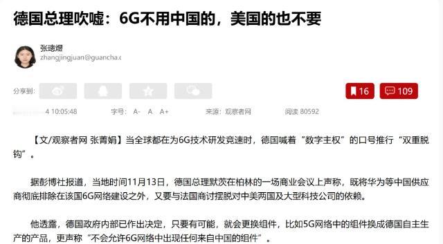 彻底决裂了!德国总理默茨近日公开表示,绝不会允许由中方生产的组件进入德国未来的6G网络建设中来。 这话说得挺横,可真往深了想全是窟窿,德国经济靠汽车、机械这些实在玩意儿撑着,6G又是未来所有产业的“数字地基”,现在非要把地基里的关键零件抽出去,最先塌的怕是自家的产业楼。 别以为6G就是手机刷视频更快,对德国这种“工业老炮”来说,这东西金贵着呢。工厂里的机器人要精准干活,得靠6G传指令;自动驾驶汽车在路上避障,得靠6G实时联网;就连医生远程给病人做手术,高清画面和操作信号都得靠6G扛着。欧盟早算过,到2030年6G能带出万亿欧元的产业链,德国心心念念的“工业4.0”,没这张网根本就是空谈。 可默茨好像忘了,现在的通信技术早就是“你中有我,我中有你”。中国手里攥着全球40%的6G核心专利,比美国的35.2%还多将近五个百分点。就说制定6G标准的3GPP组织,首个关键项目里,中国移动和德国电信都是牵头的,想绕开中国搞标准?门儿都没有。 之前德国车企不信邪,非要把电动车里的中国传感器换成本土货,结果闹了大笑话,要么在高速上反应慢半拍,差点撞车;要么天儿一热就罢工,仪表盘全乱跳。工程师熬了三个月,最后还是乖乖换回中国配件。这哪儿是依赖,分明是技术实力摆在那儿,不服不行。 更实在的问题是,这禁令一落地,掏钱买单的是德国自己人。欧洲搞风电时就吃过这亏,为了避开中国组件找本地厂代工,同样规格的风电塔筒,成本涨了四成,交货还晚了两个月。德国风电企业当时就吐槽:“这不是花钱买罪受吗?” 6G组件比风电零件复杂十倍都不止。诺基亚牵头的欧盟6G项目Hexa-X,砸了800亿欧元进去,核心专利占比才8%。想靠这点家底补上中国的技术缺口,纯属做梦。到时候建网成本蹭蹭涨,要么企业利润缩水,工人工资受影响;要么把成本转嫁给老百姓,手机费、网费都得涨价,这笔账谁都算得清。 美国那边也指望不上。虽然美国拉着日本投了4.5亿美元搞6G,但重点全放在卫星通信和网络安全上,真要落地商用,比中国慢了不止一拍。德国真把宝押在盟友身上,等美国技术成熟了,别说在6G领域领跑,能不能跟上全球节奏都难说。 最有意思的是,德国今年刚解禁华为的5G设备,就是因为发现脱离中国供应链,5G建网成本高得离谱。现在在6G上又走回头路,这不是自己打自己脸嘛。 默茨把技术问题搞成政治博弈,说白了就是钻进了“你赢我输”的死胡同。可科技这东西从来不是用来斗气的,德国电信早就说了,6G得全球合作才能搞成。现在全球经济都盼着复苏,德国却在核心技术上筑墙,相当于自己给工业升级踩了刹车。 说穿了,禁止中国组件不是“保安全”,是“堵自己的路”。中国6G研发已经摸到门了,50多项核心成果都验证完了,不会因为德国的禁令就停步。反倒是德国,真把中国排除在外,不仅6G建网要多花冤枉钱、拖慢好几年,还可能错过下一轮产业革命的红利。 通信网络拼的是技术、效率和成本,不是看谁的口号喊得响。德国要是真想在6G时代占先机,与其喊着要切割,不如坐下来好好谈,生意场上,靠谱的技术永远比虚张声势的禁令管用。