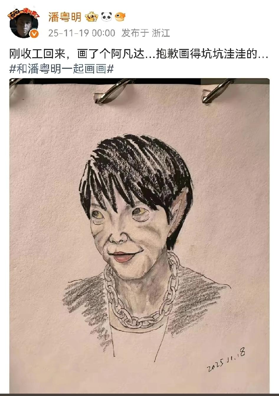 潘粤明是个人才,默默的画了个高市早苗,这是一幅有内涵的画! 画的还挺像,像那个高什么早什么的死女人,好像那个饿了么的出轨对象,脖子上那是狗链子吗? 哈哈,潘有点可爱是怎么回事哈哈哈哈哈,是懂阴阳的,被笑死了,娱乐圈也在默默关注政治走向