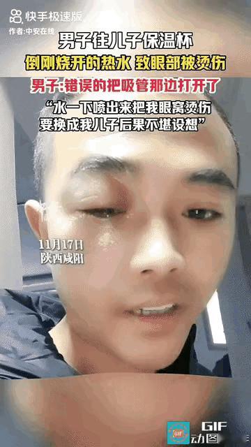 太吓人了!陕西咸阳,男子把刚烧开的开水倒进儿子的保温杯里,然后盖上盖子摇晃几下,想着把杯子里面清洗一下,烫一烫消毒。结果男子误把吸管那层盖子打开了。水杯里的热水立马喷了出来,直接喷到男子的眼睛上,把眼窝都烫伤了! 这位父亲本想用开水给孩子的保温杯彻底消消毒,他刚把滚烫的水倒进去,盖紧主盖子,习惯性地摇晃了几下杯子,希望热水能冲洗到每个角落。可是谁也没想到,他一时疏忽,错把吸管口的小盖子当成了该打开的地方。 就在吸管盖被掀开的瞬间,杯内压抑的热水和蒸汽像高压水枪一样喷射出来,直冲他的面部。眼睛周围一阵火辣辣的剧痛,他瞬间睁不开眼了。家人慌忙赶来,看到他眼窝处已经红肿起来,赶紧带他去医院处理伤口。 当热水倒入保温杯并密封后,杯内上部会充满水蒸气,摇晃杯子会使热水剧烈晃动,加速更多水蒸气产生,导致杯内气压急速升高。此时一旦打开任何一个出口,比如吸管口的盖子,内部的高压会强行把热水和蒸汽向外推,造成喷射。 许多吸管保温杯上其实都有安全提示,标明“请勿装水温45度以上饮品,以免烫伤”,但这些提示往往字体较小,容易被忽略。 若不幸被烫伤,要记好“冲、脱、泡、盖、送”五字诀:首先是迅速将烫伤部位在冷水下冲洗,以降低温度,减轻热力对皮肤的持续损伤;随后小心地将烫伤部位的衣服剪下,避免强行撕扯;接着把烫伤部位浸泡在水中15-30分钟;之后用干净的毛巾或纱布覆盖伤口;最后紧急送往医院救治。 保温杯不要装过烫的热水,更不要在装入热水后立刻密封摇晃。清洗保温杯时,用温水搭配中性洗涤剂就好,盖好盖子后轻轻晃动清洗即可,避免使用刚烧开的水并确保盖子不要完全拧紧。如果需要用开水消毒,最好让杯子敞开静置一段时间,等水温降下来再盖盖,千万不要在高温时摇晃。 各位读者你们怎么看?欢迎在评论区讨论。